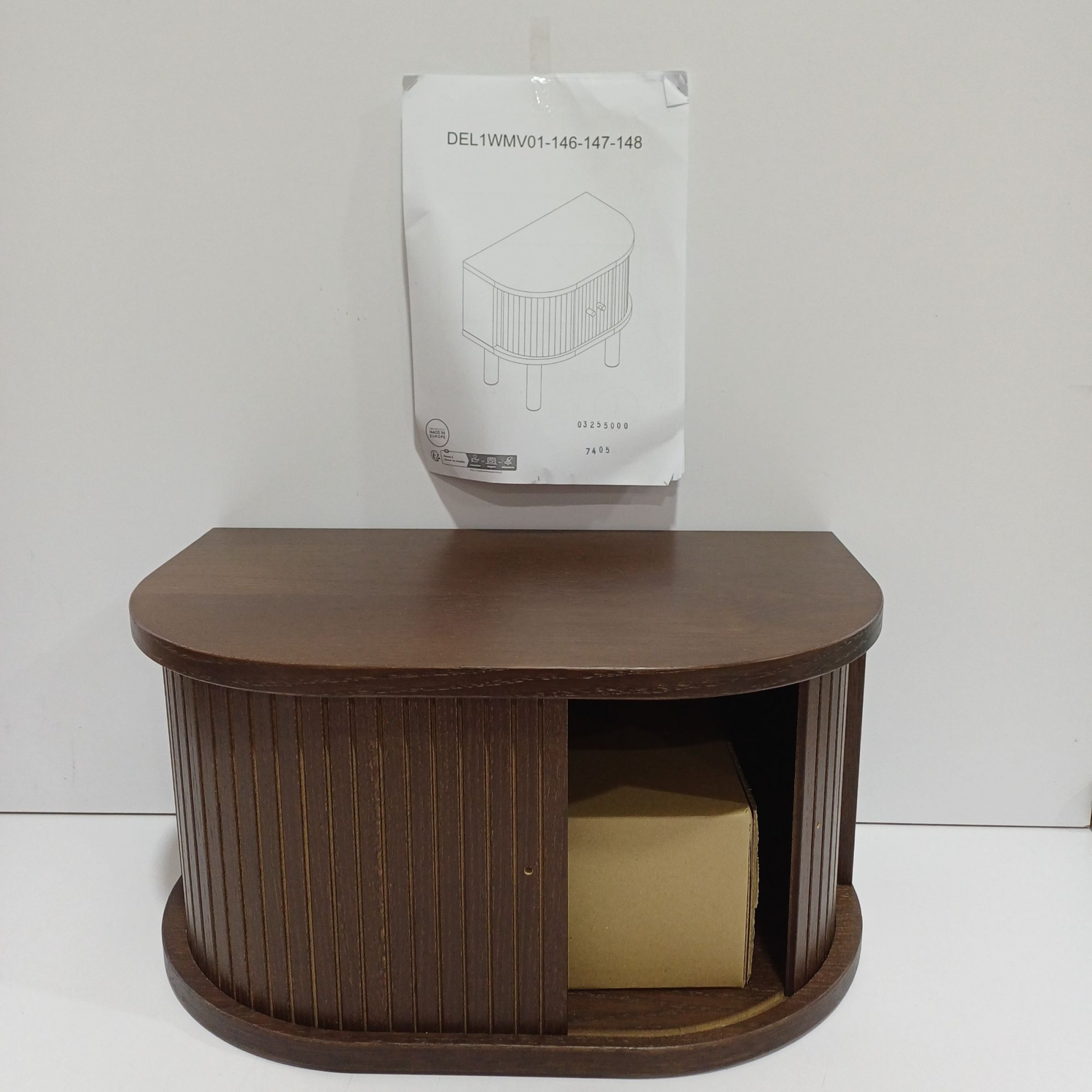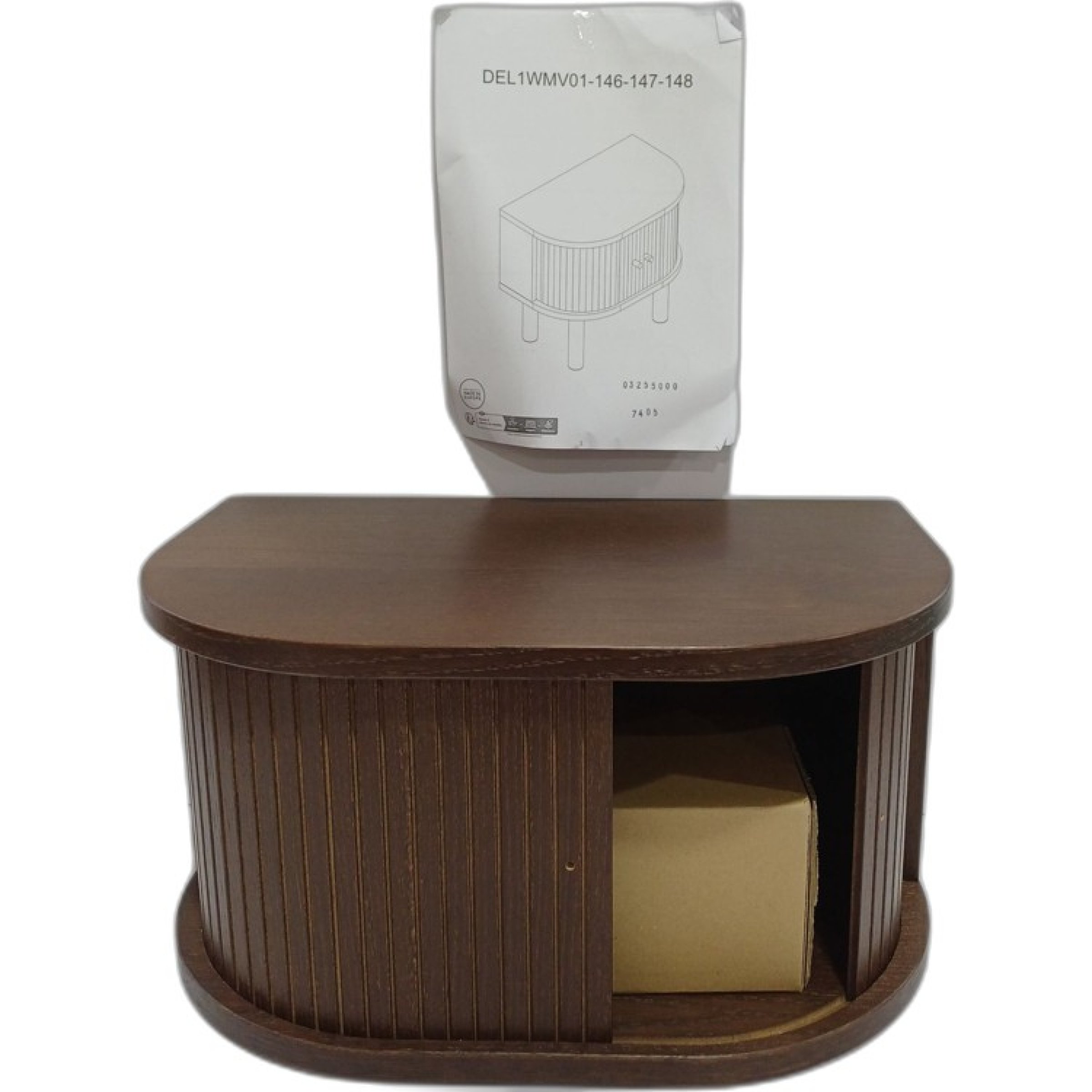 1 Stk. Nachttisch mit geriffelter Front und Schiebetür, dunkel braun, ca.50x30cm
