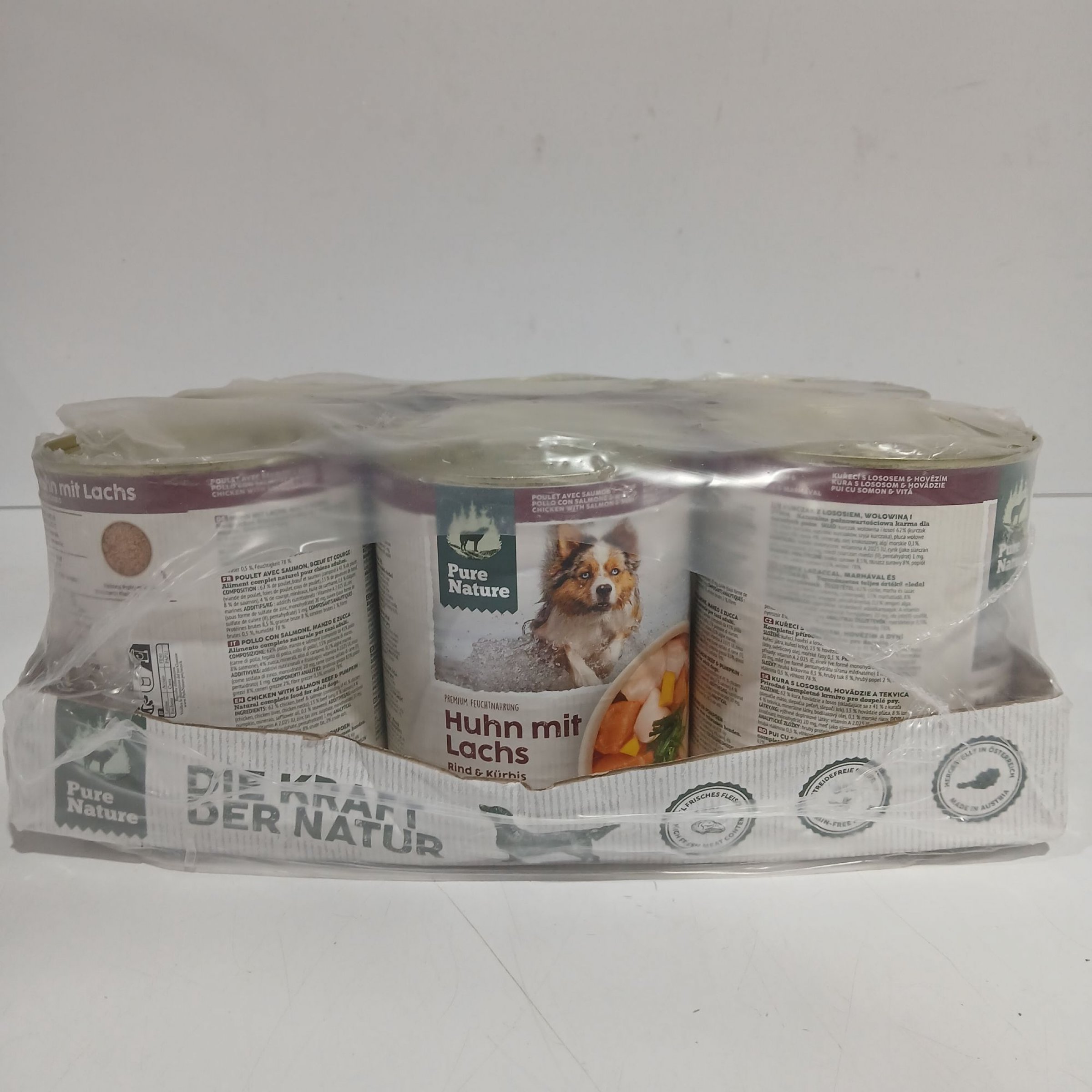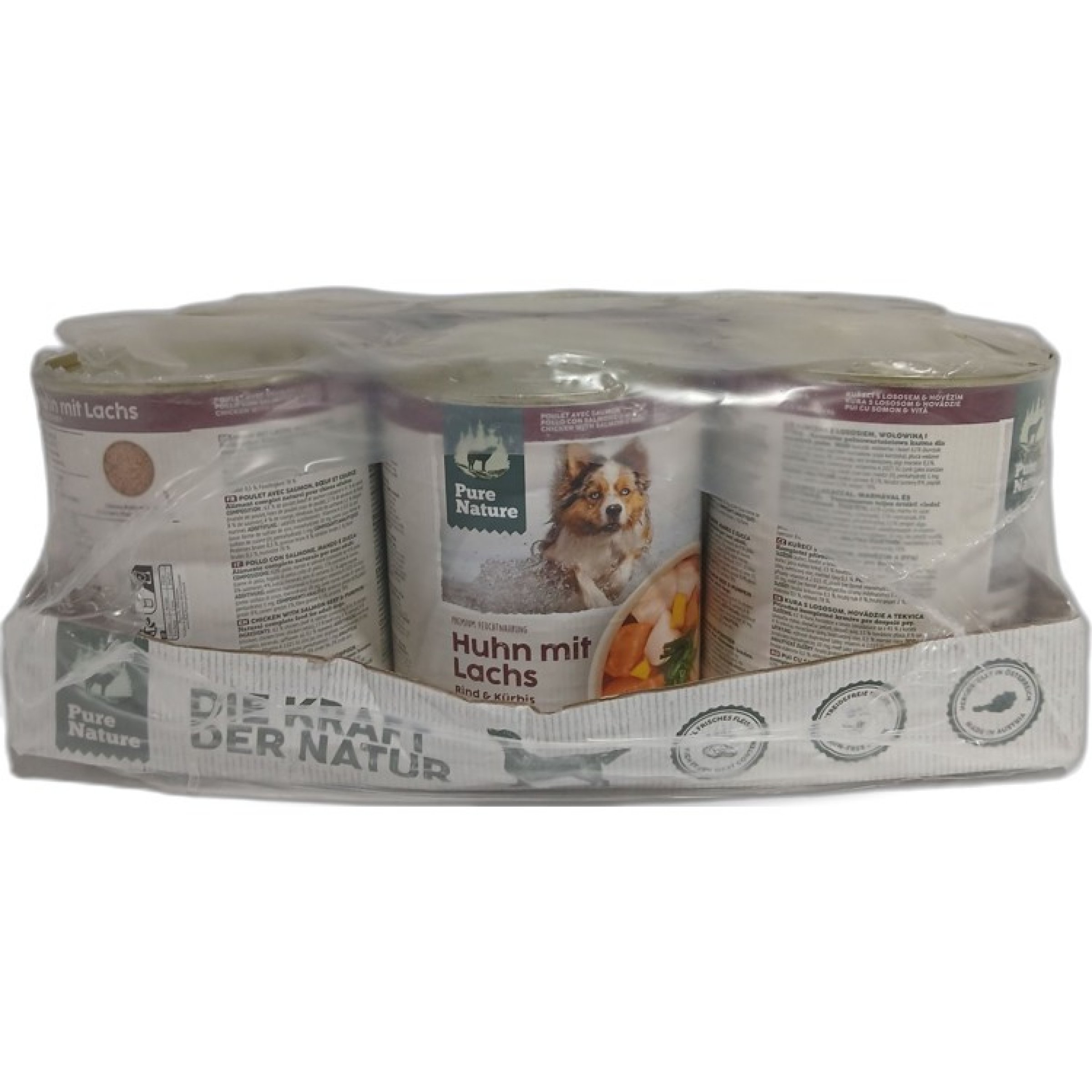 1 Packung Pure Nature Hundefutter Adult Huhn & Lachs 6x800g