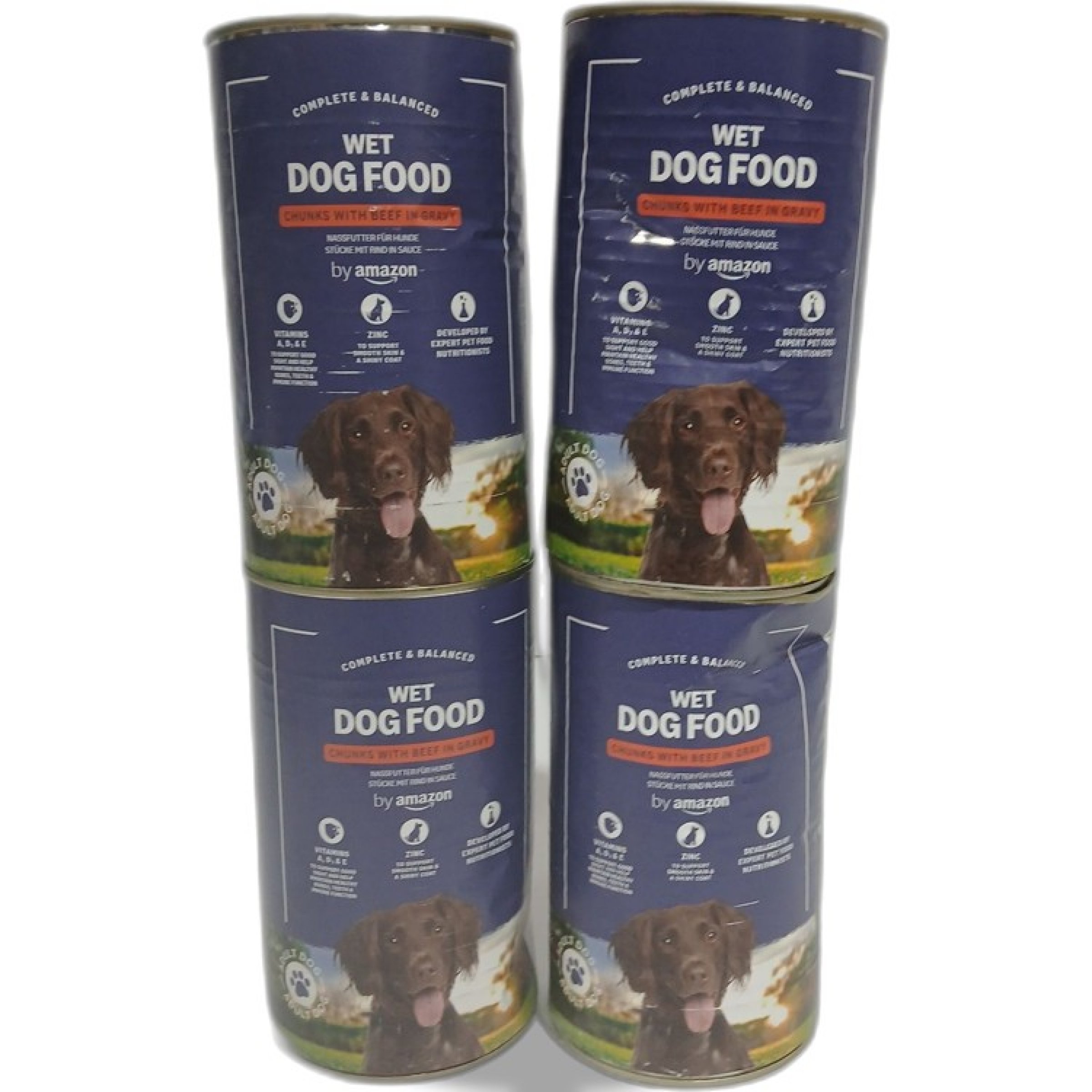4 Stk. Amazon Wet dog Food Chunks with Beef in Gravy je 1,24kg