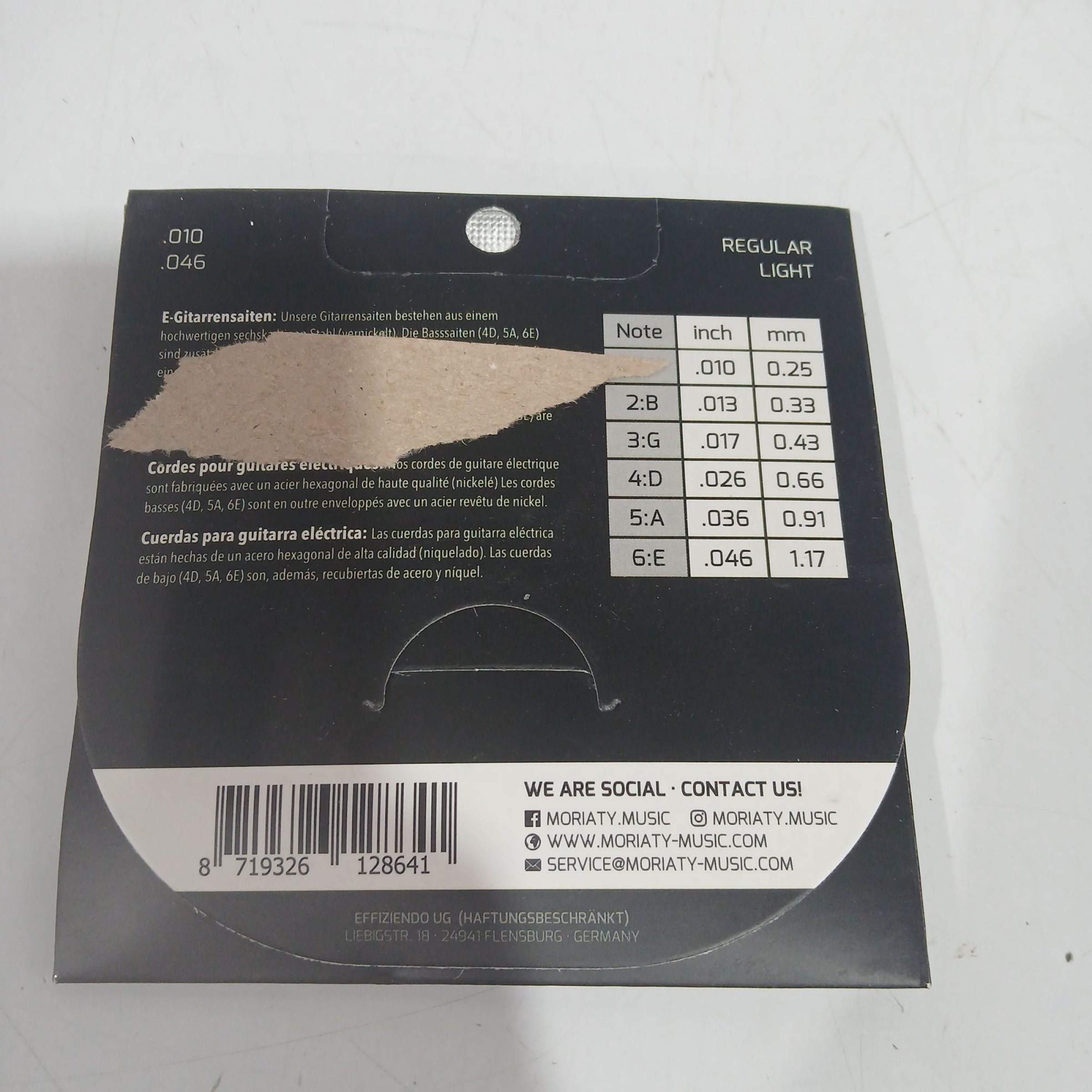 1 Stk. Moriaty Electric Guitar Strings regular Light .010 .046