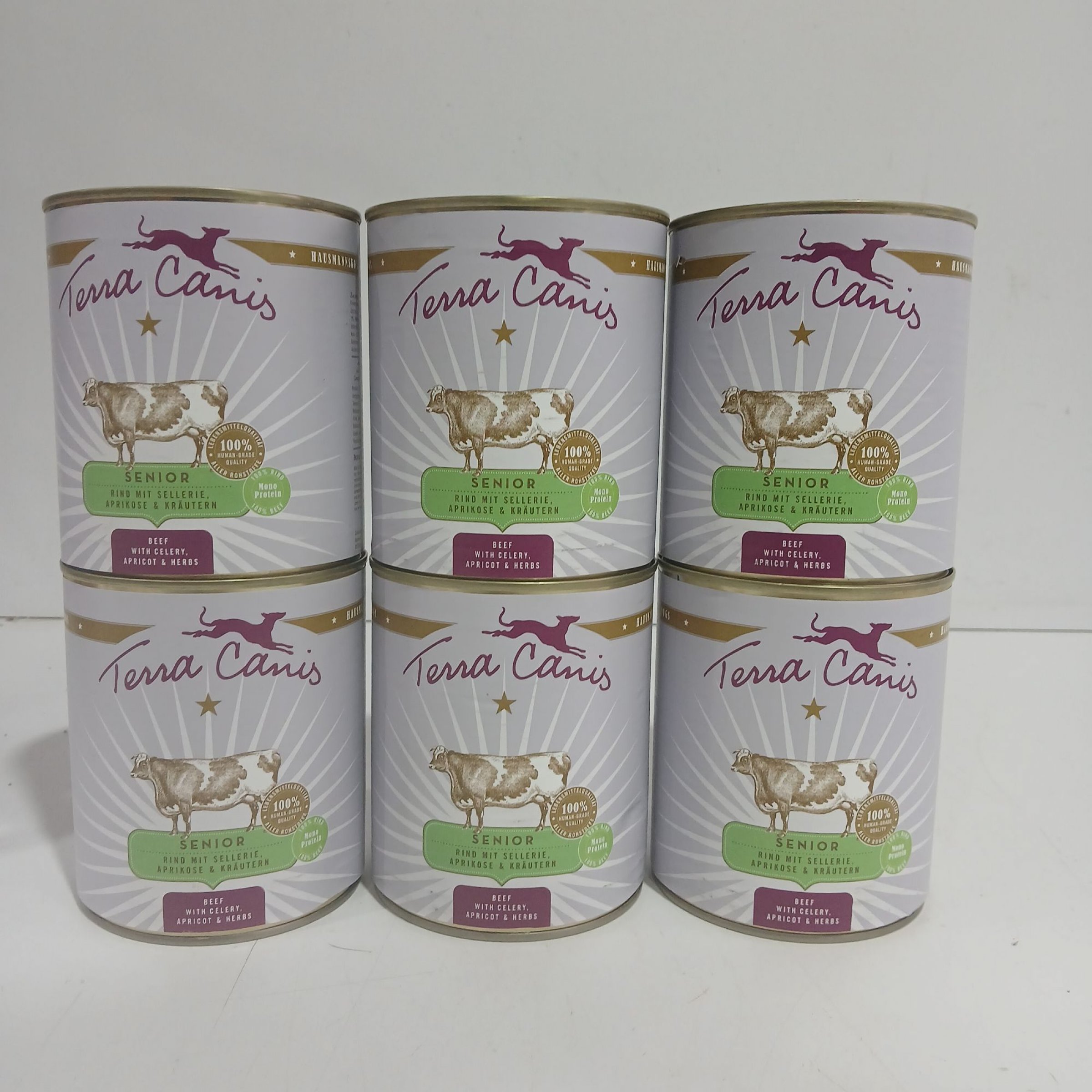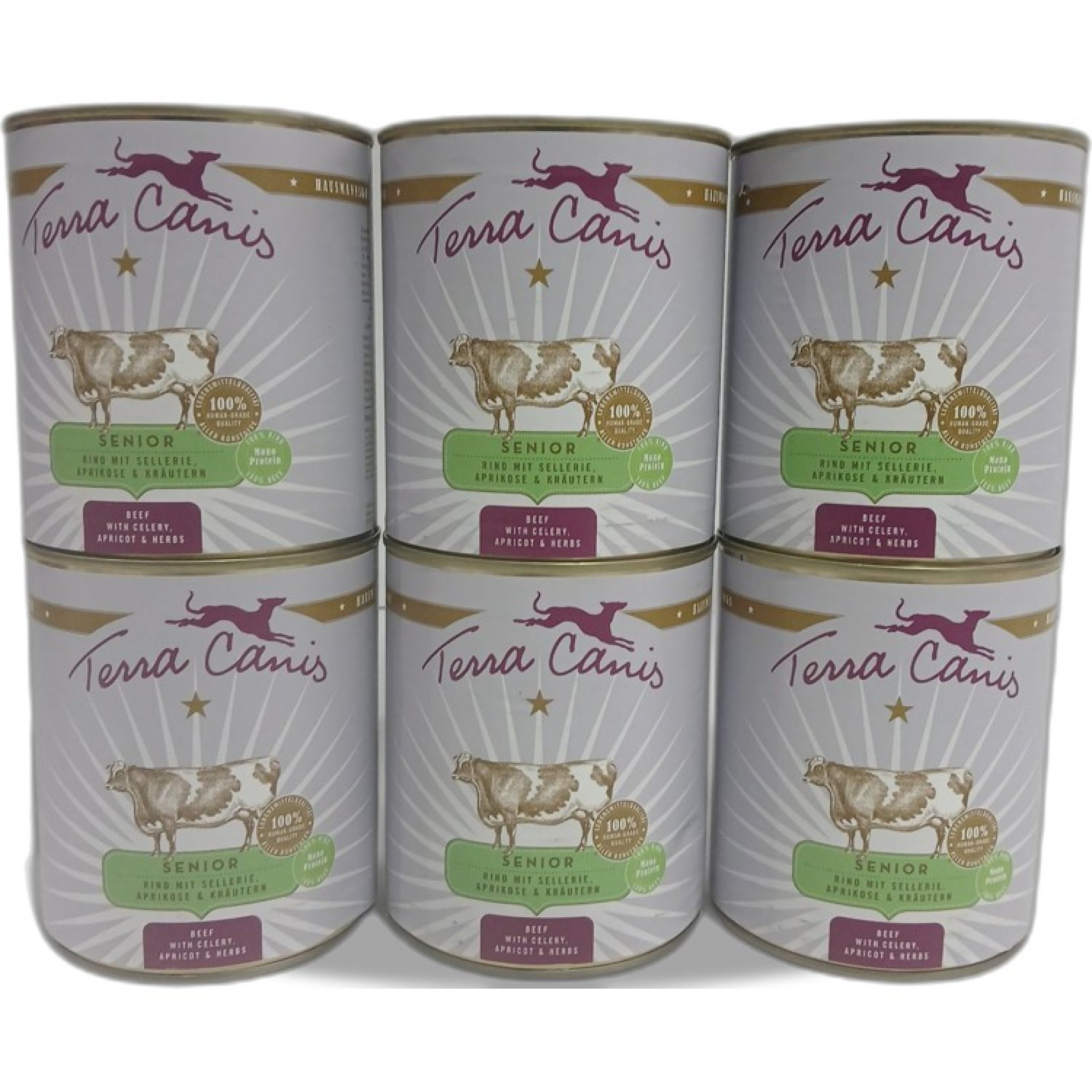 1 Packung Terra Canis Senior Hundefutter Beef with Celery, Apricot & Herbs 6x800g