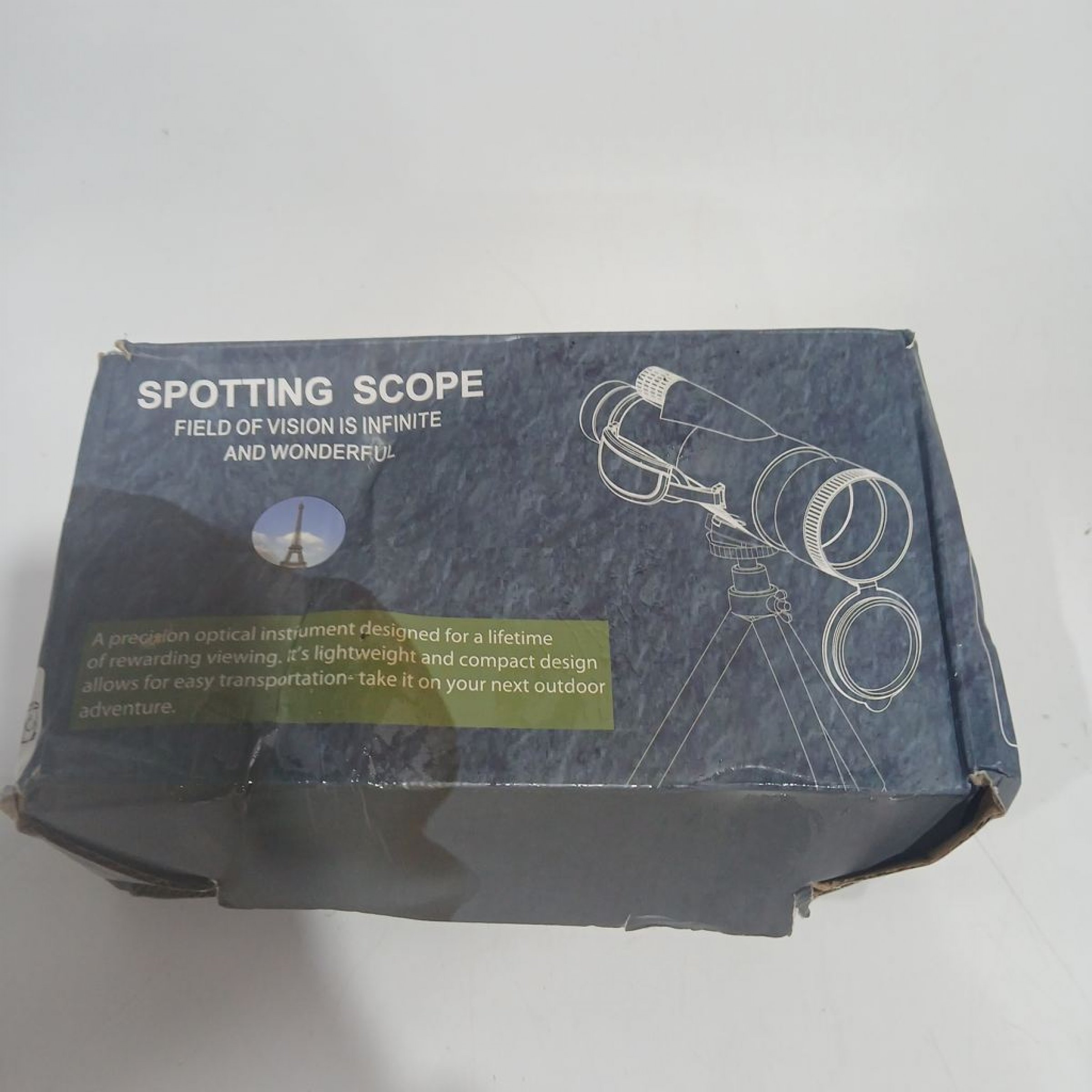 Präzisionsoptisches Instrument, entworfen für eine lebenslange, lohnende Betrachtung. Leicht und kompakt für einfachen Transport. Verpackung verschmutzt