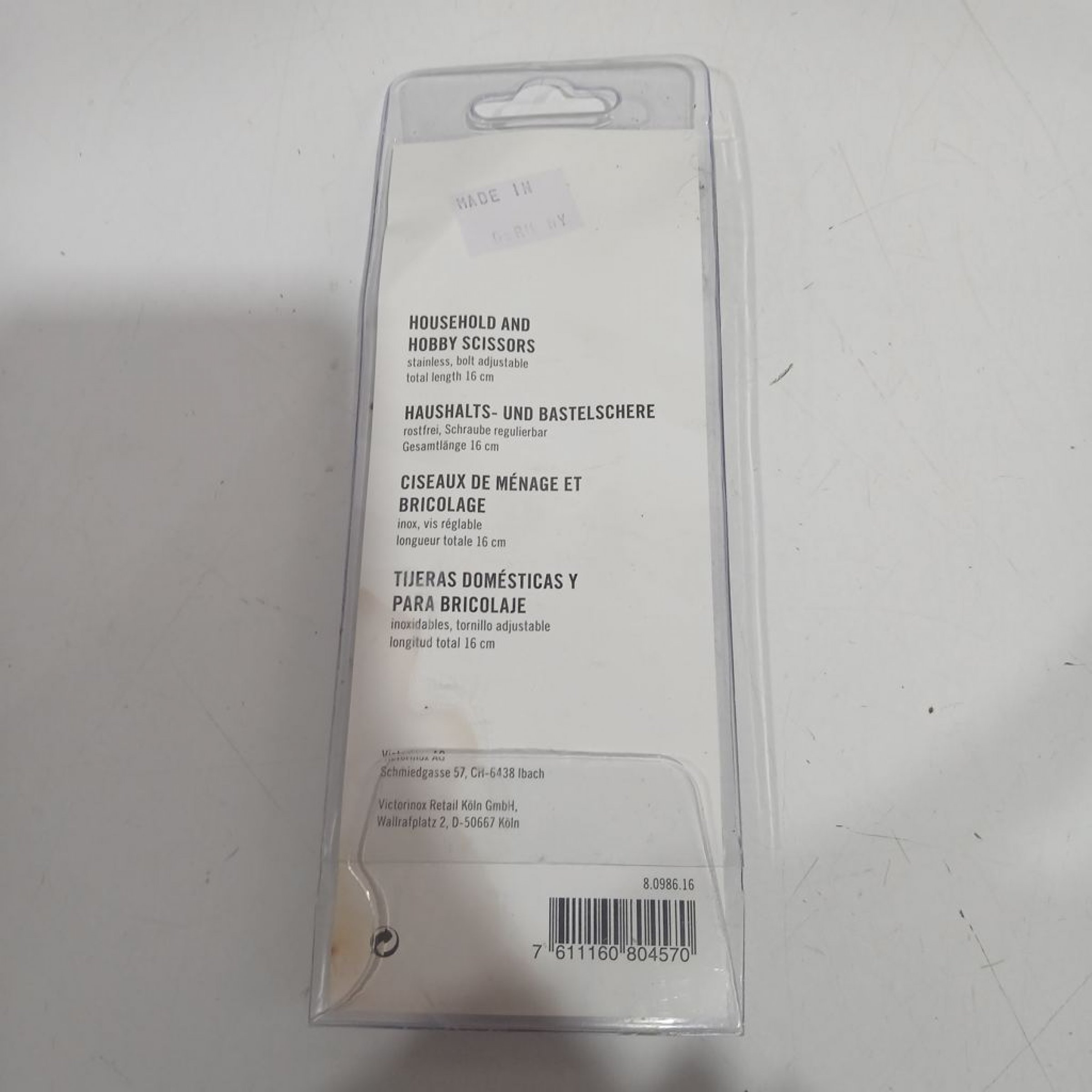 Schere im Originalverpackung. Länge: 16 cm.