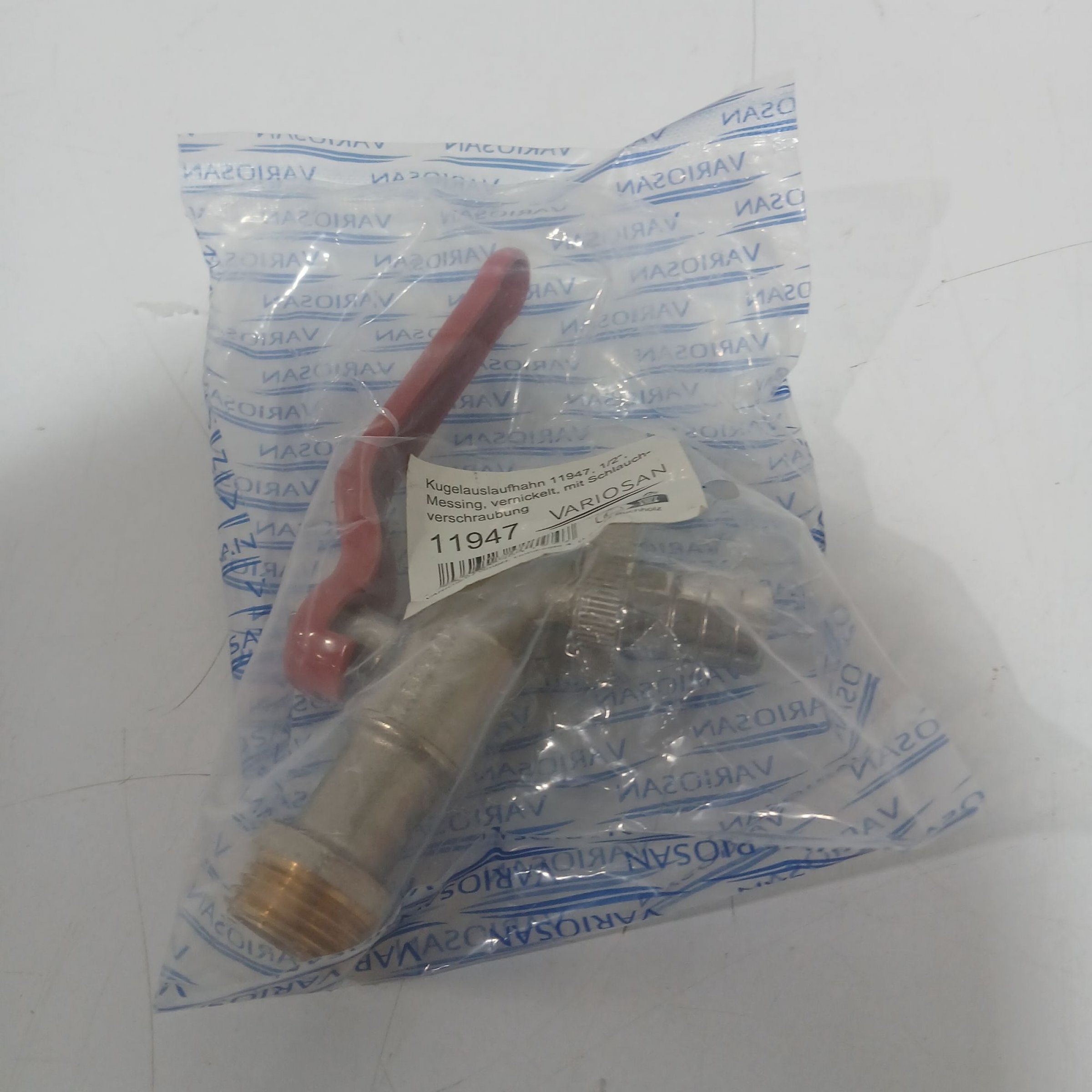 1 Stk. Variosan Kugelauslaufhahn 1/2" Messing mit Schlauch-verschraubung