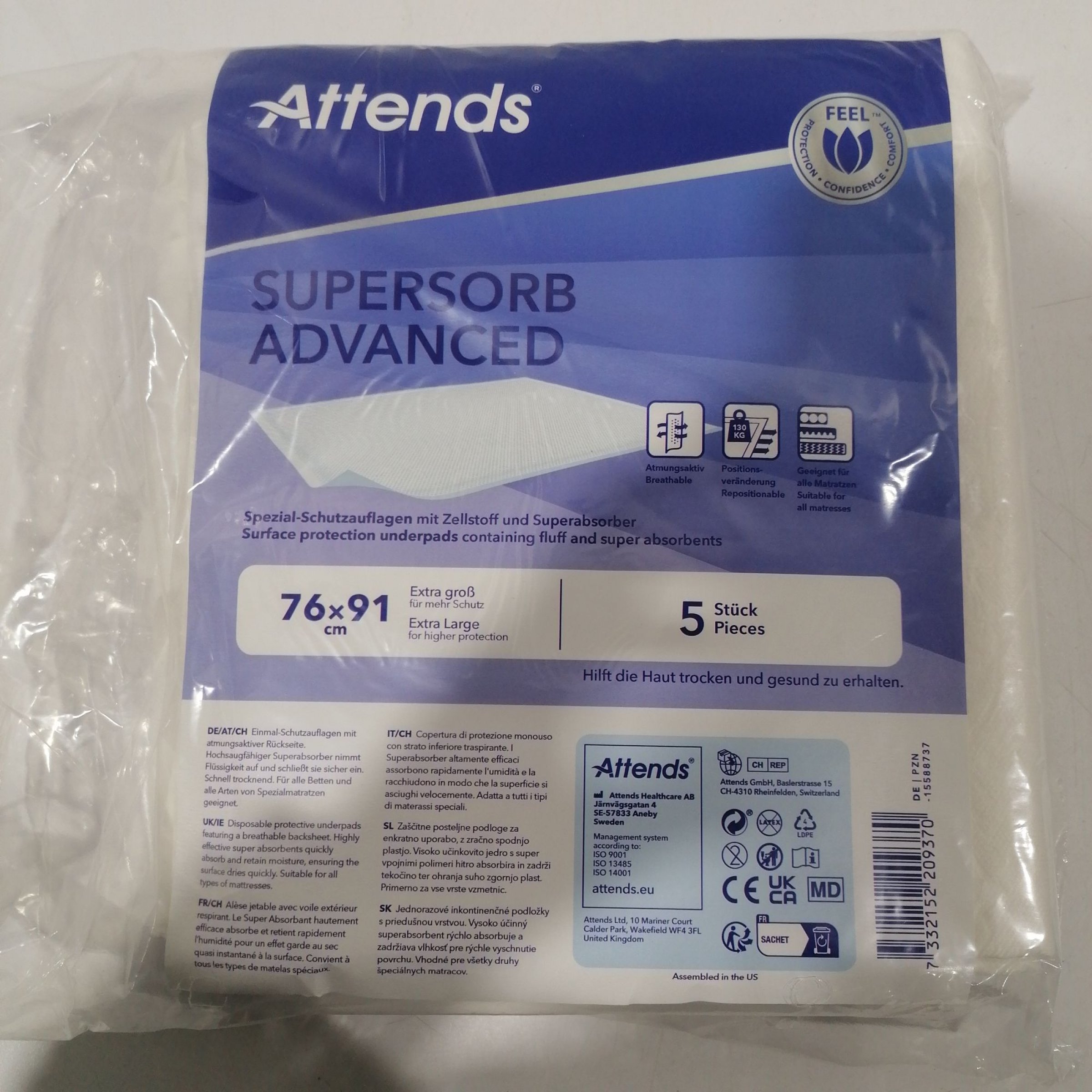 1 Stk. Attends Supersorb Advanced Spezial-Schutzauflagen 76x91cm 5Stk