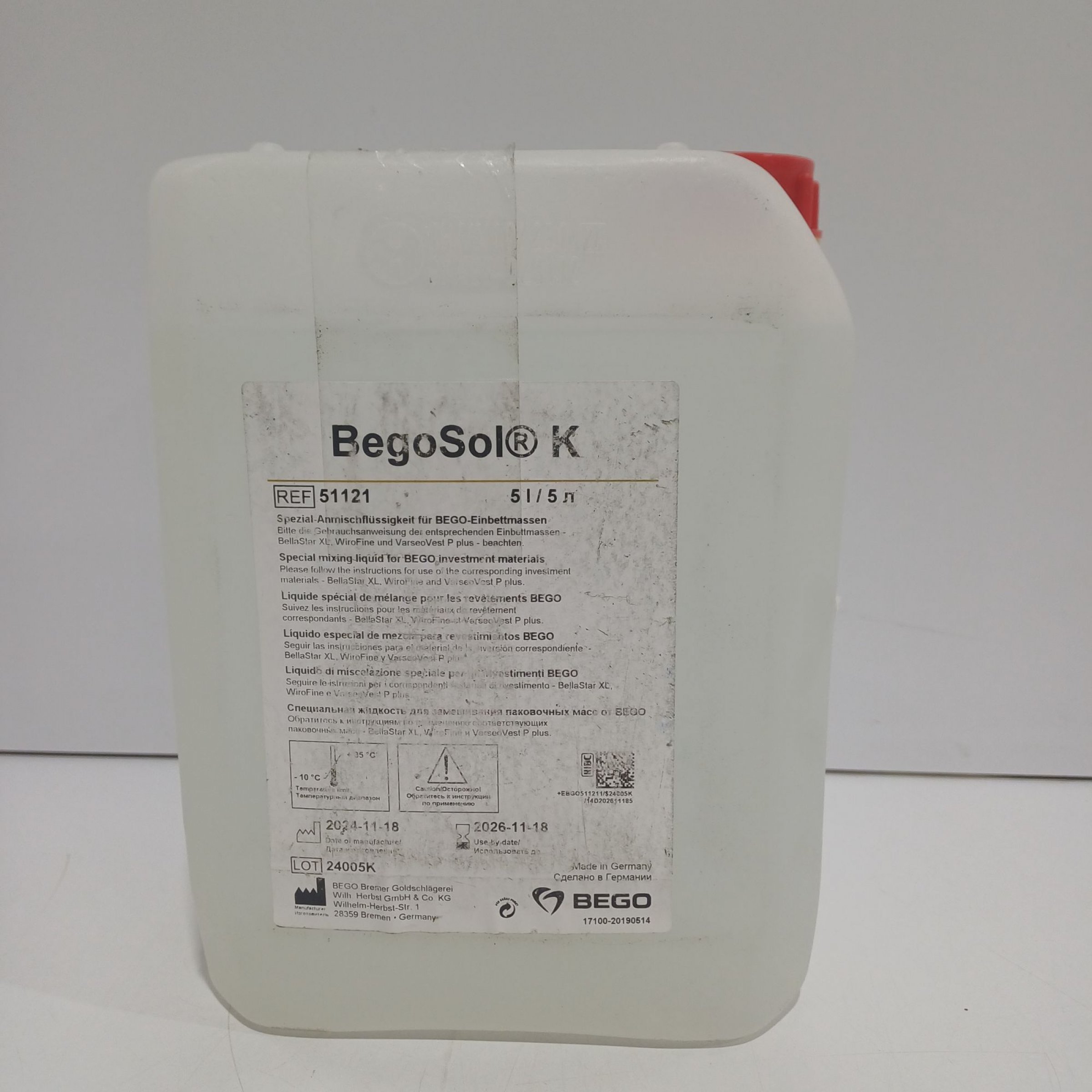 1 Stk. BegoSol K, Spezial-Anmischflüssigkeit für BEGO-Einbettmassen ca. 5L