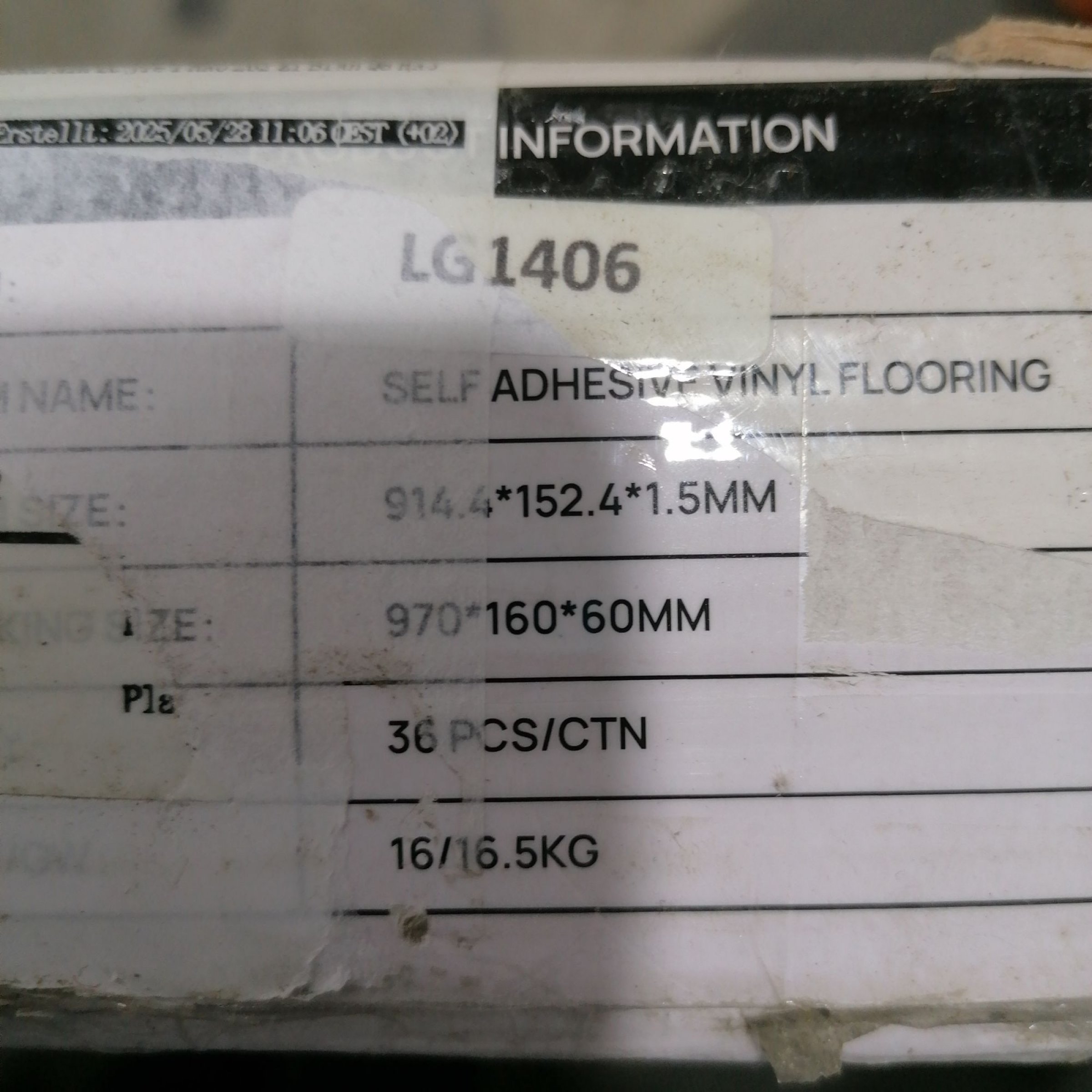 1 Packung Darphe Self Adhesive Vinyl Floor 970x160x60mm LG1406 36Stk
