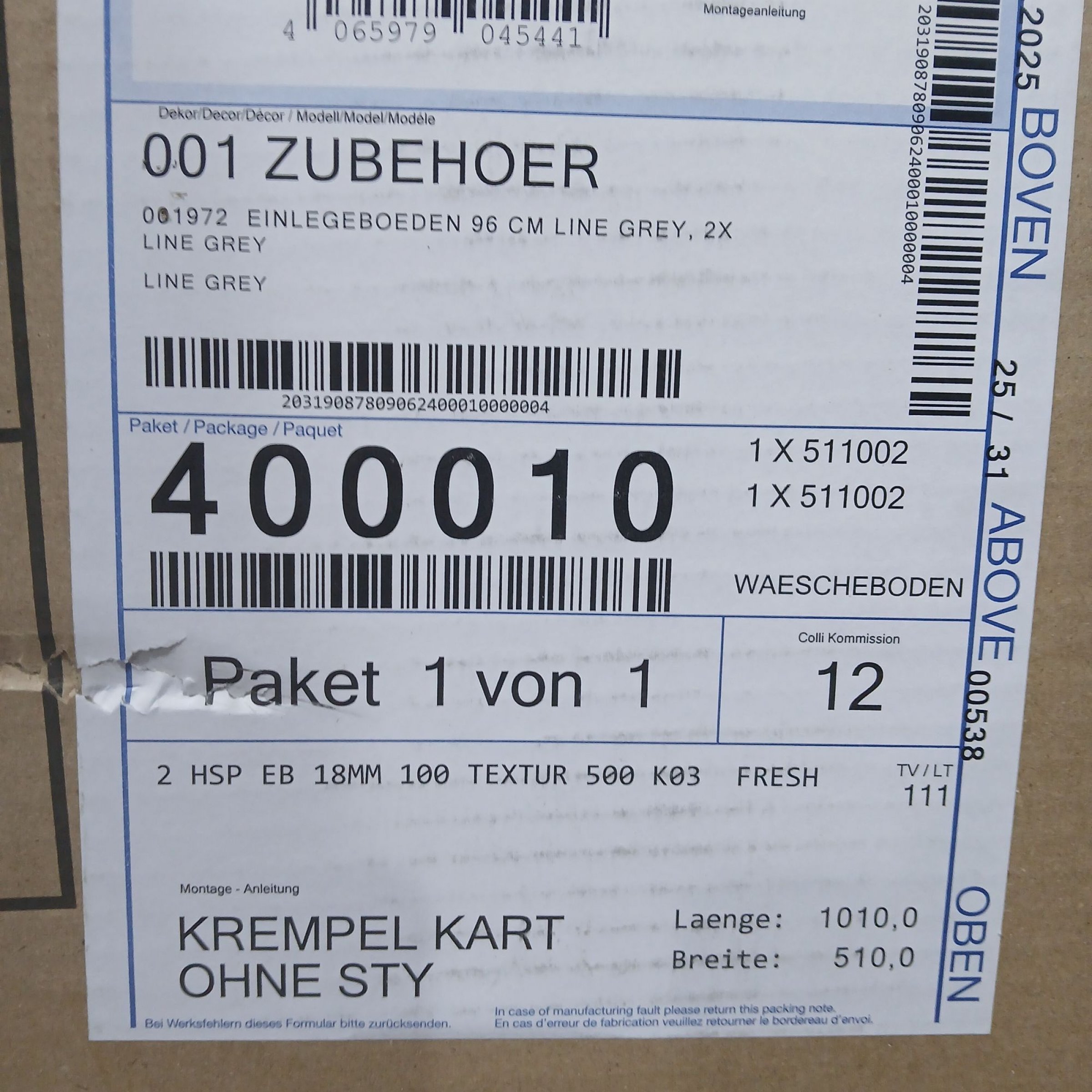 1 Packung Einlegeböden 96cm Line Grey 2Stk