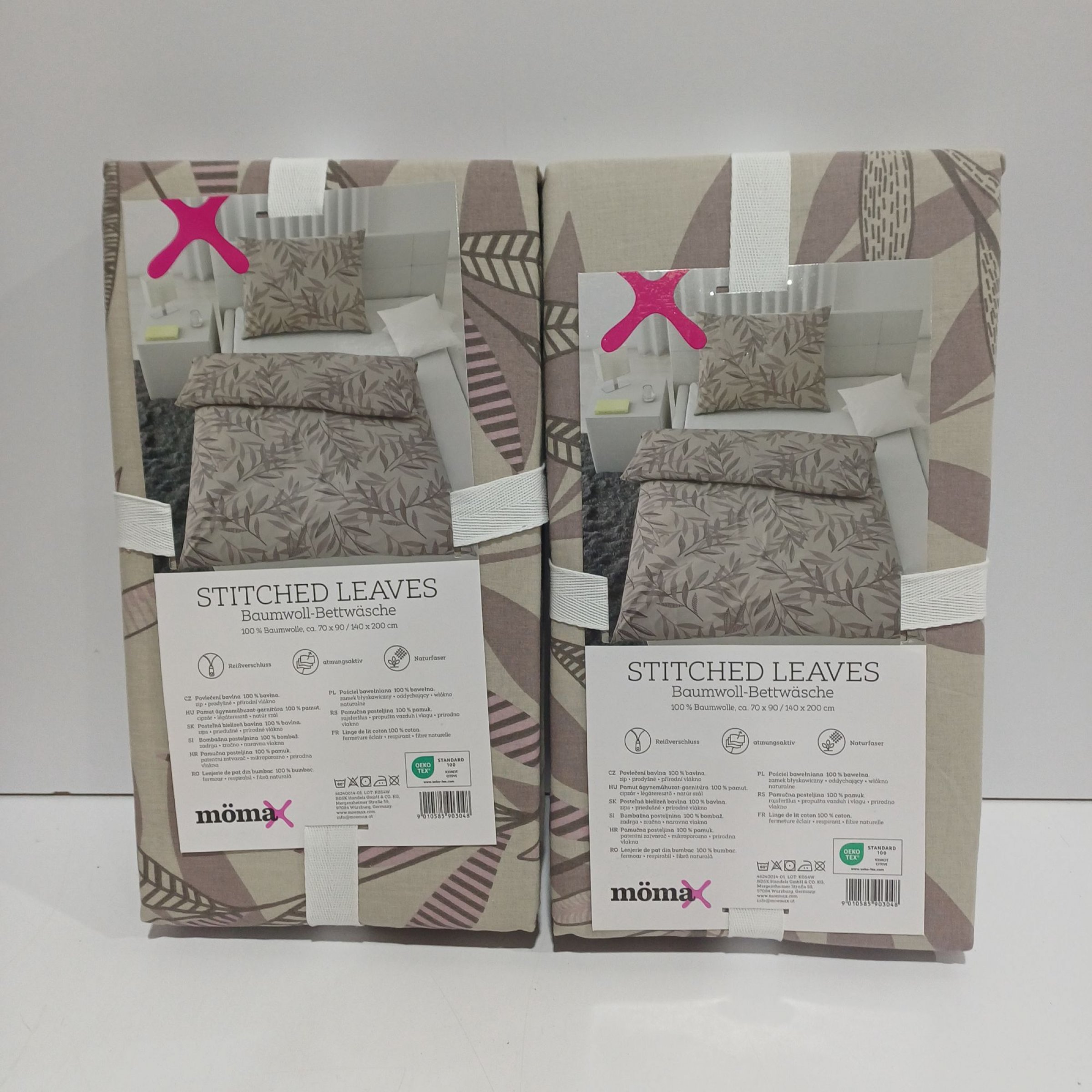 1 Set mömax Stitched Leaves Baumwoll-Bettwäsche 2x70x90/ 2x140x200cm