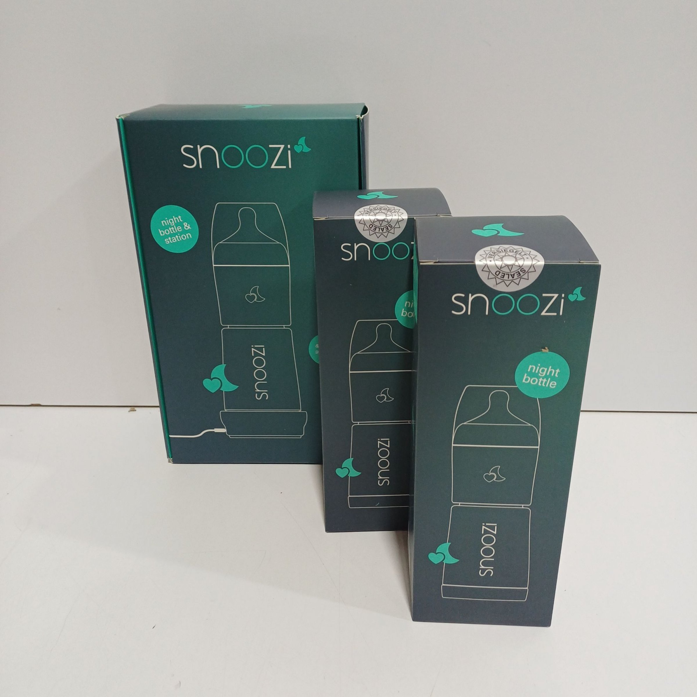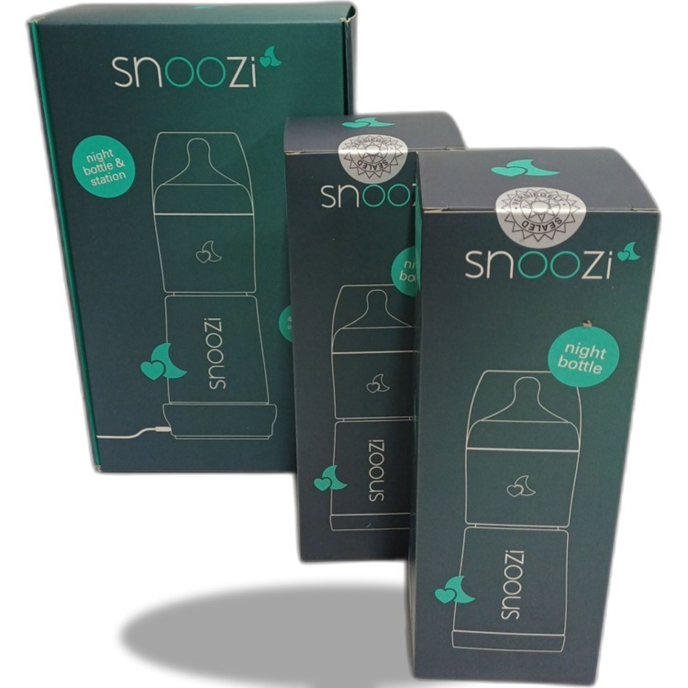 Snoozi Nachtflasche mit integriertem Milchpulver-Behälter und Wärmestation+ 2 Flaschen