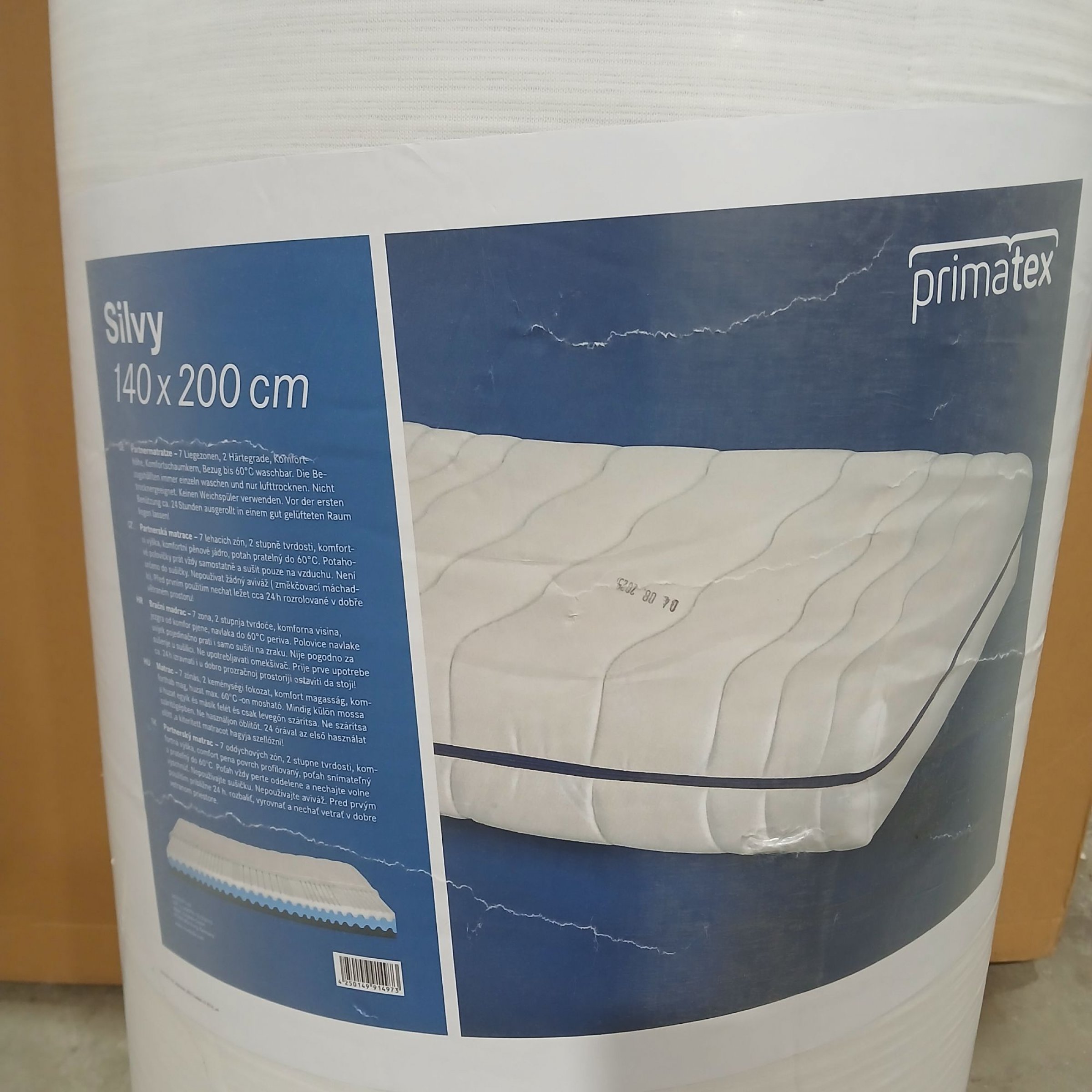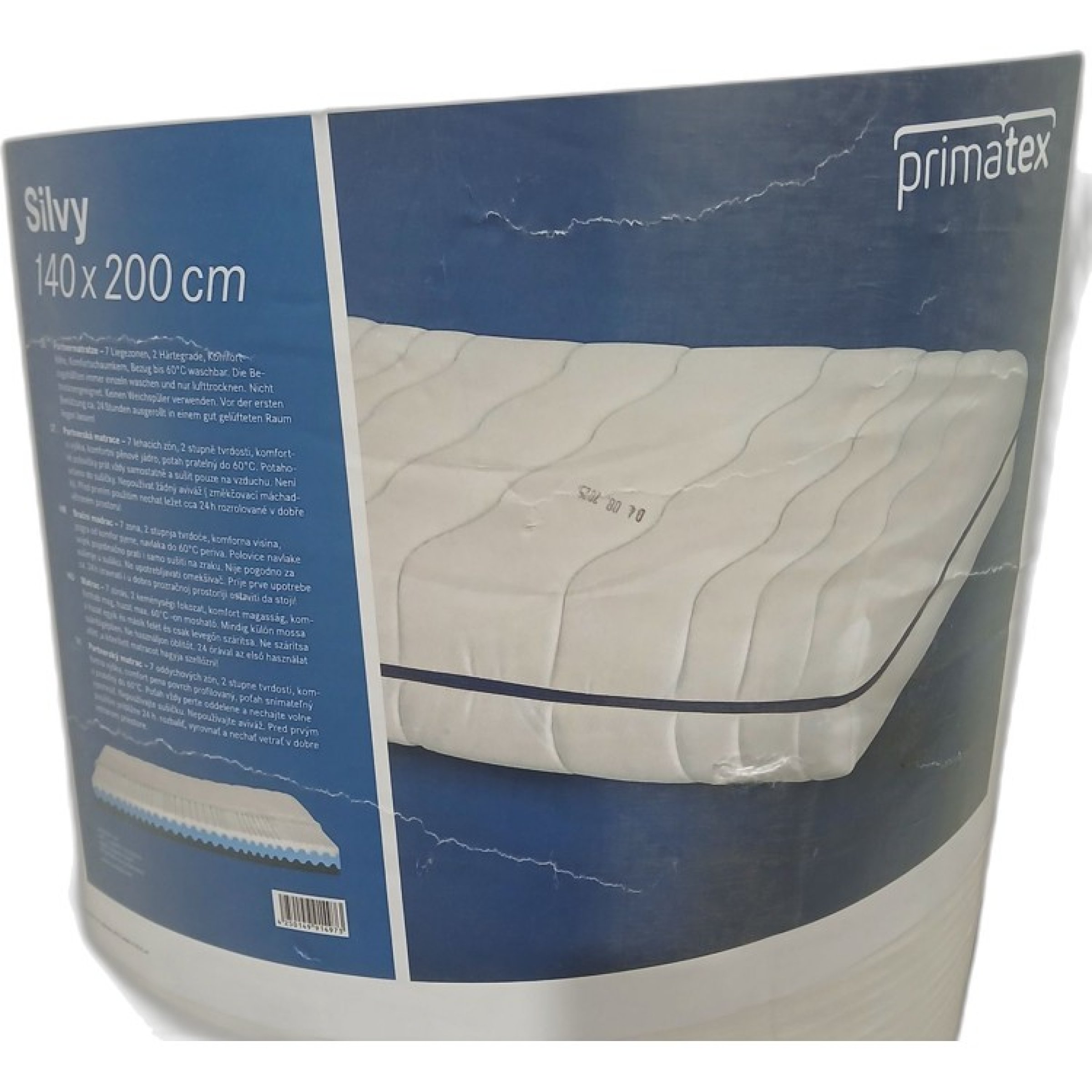 Verpackung beschädigt, Matratze leicht verschmutzt.
