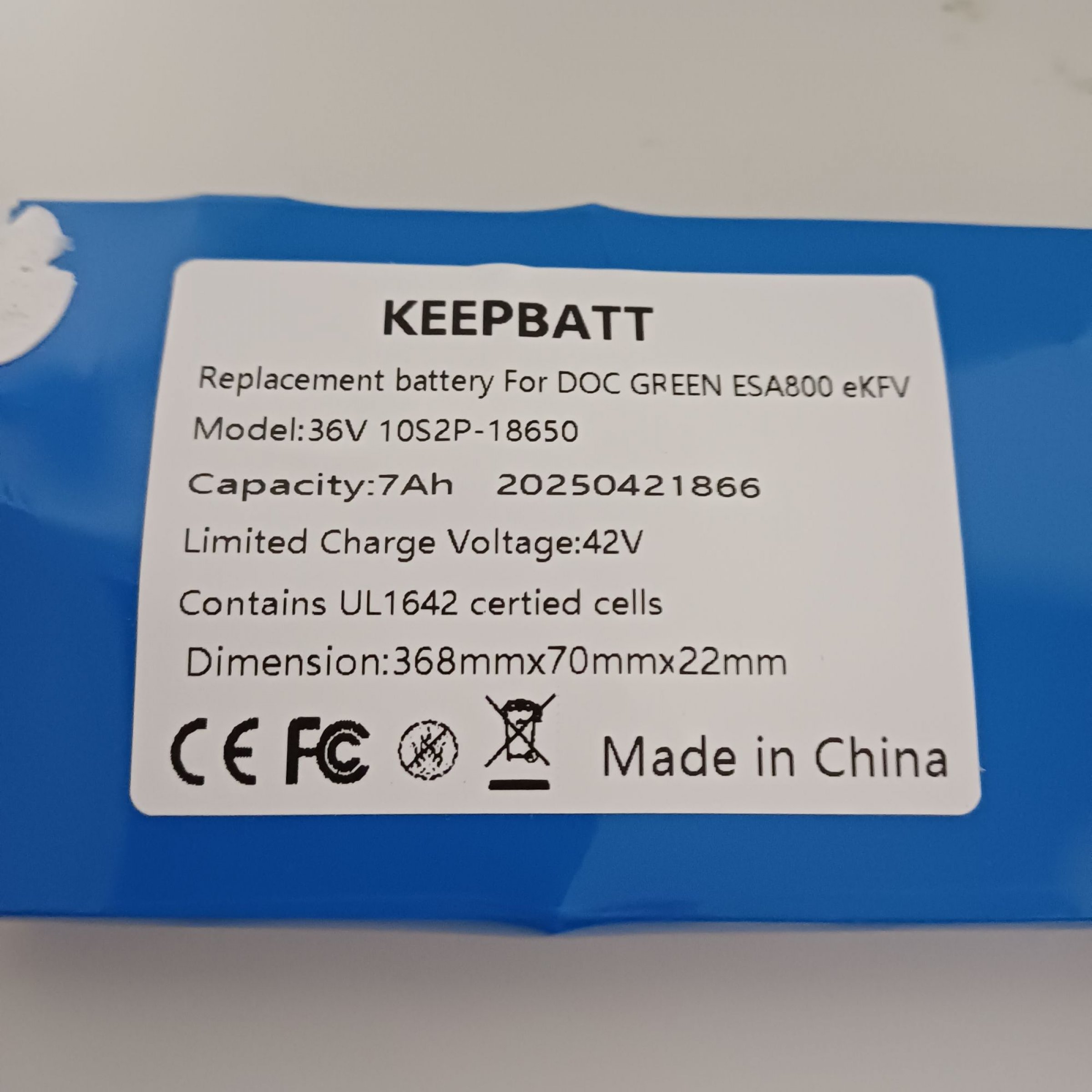 1 Stk. KEEPBATT wiederaufladbarer Lithium-Ionen-Akku 36V 10S2p-18650