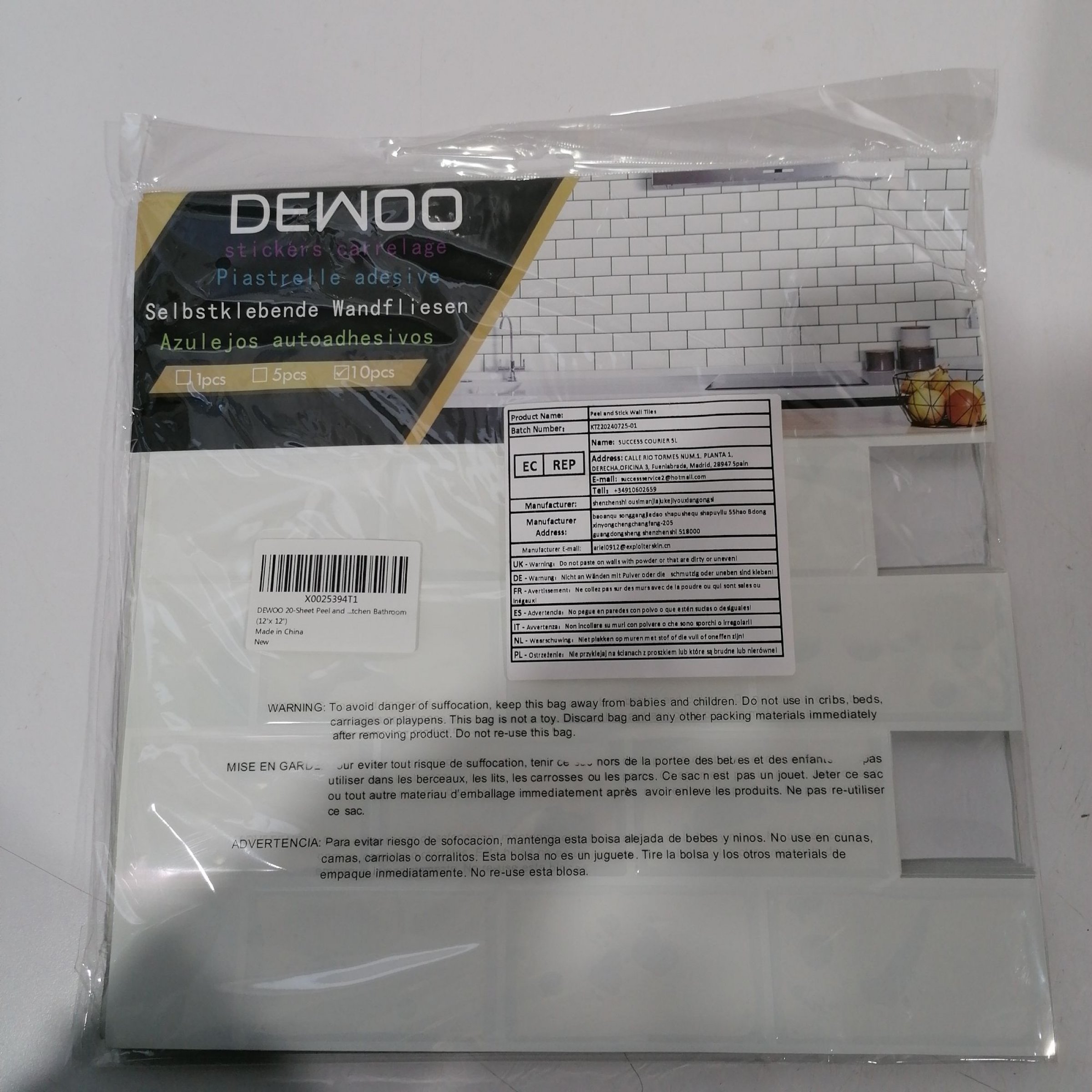 1 Set Dewoo Selbstklebende Wandfließen 10Stk 12x12cm KTZ20240725-01