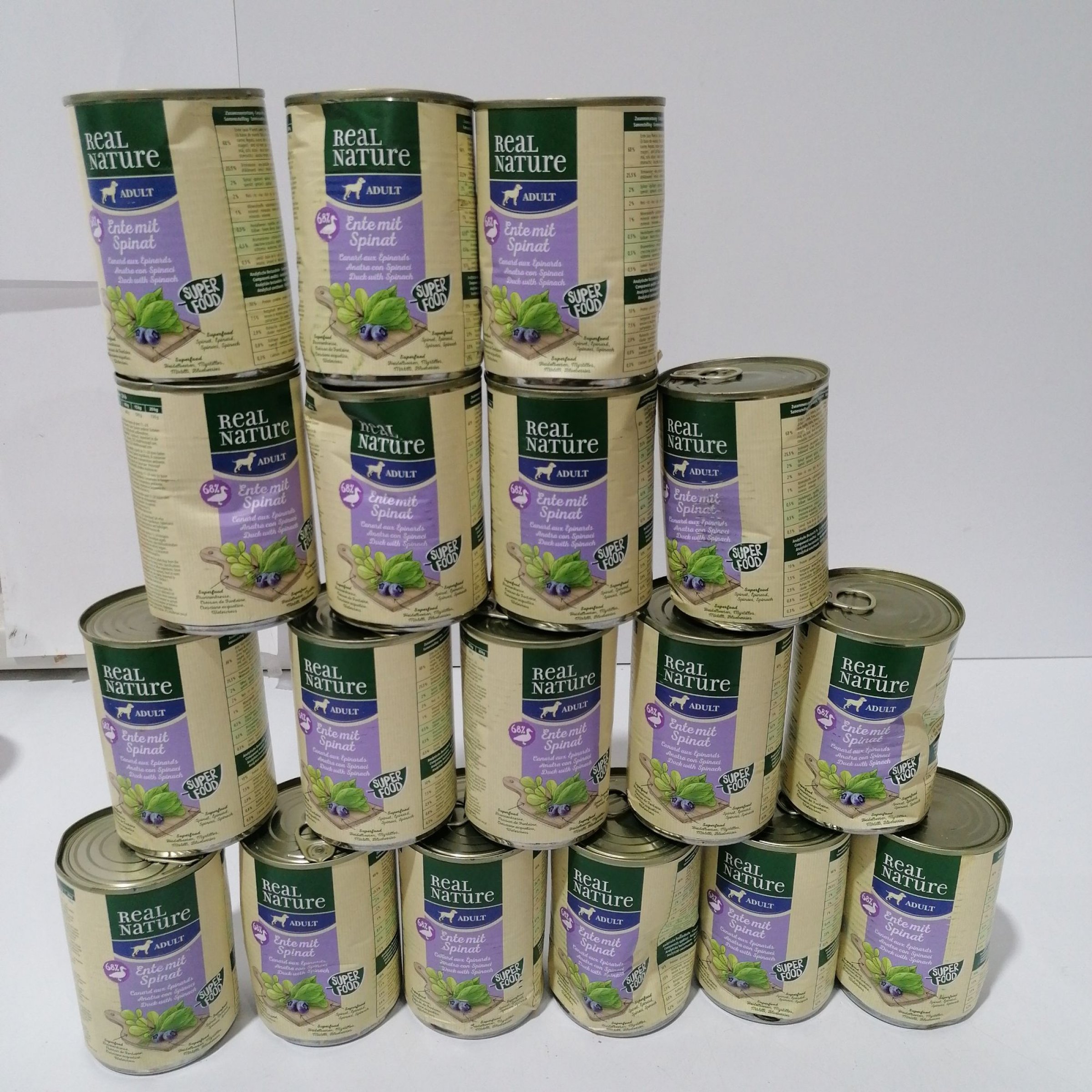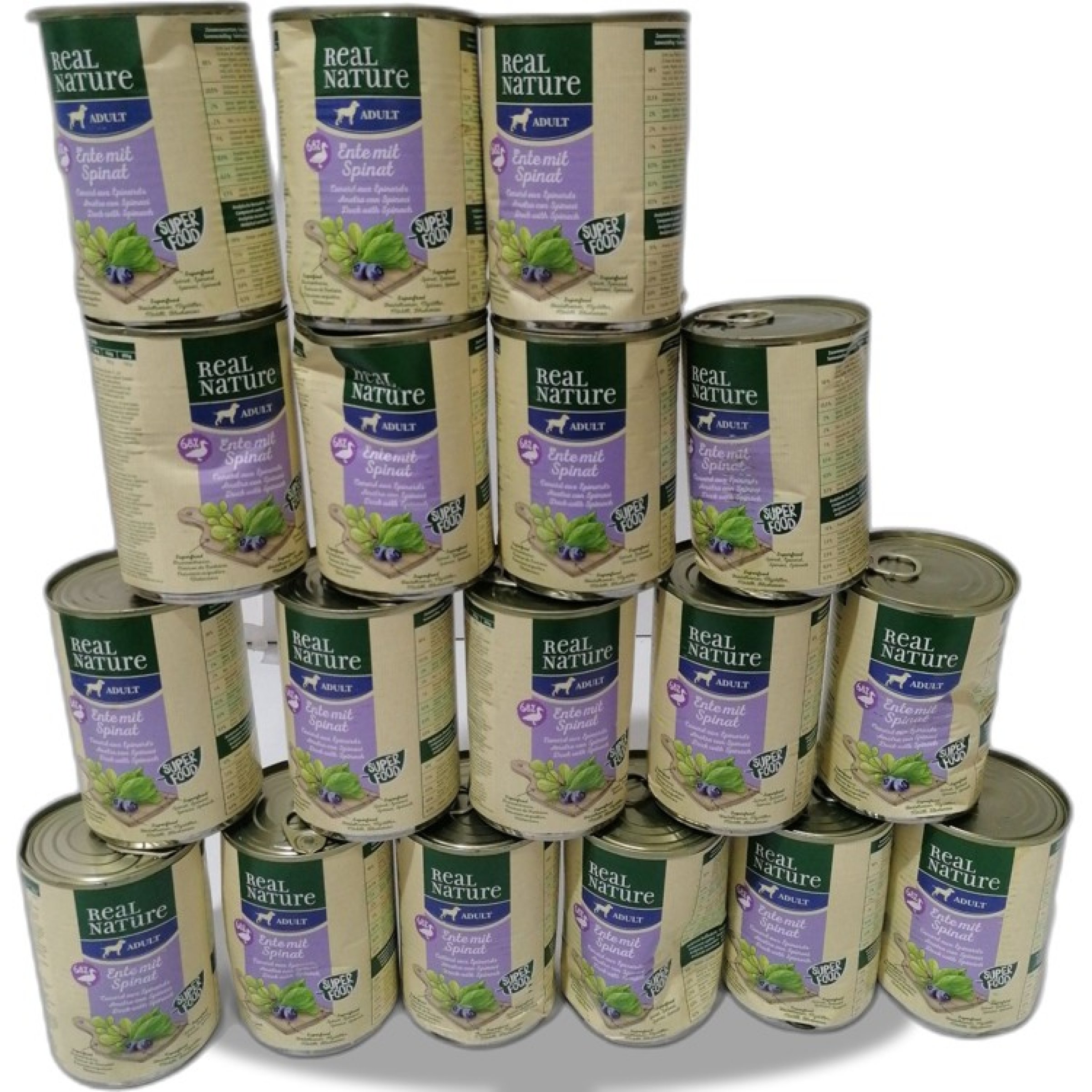 1 Packung Real Nature Adult Ente mit Spinat 18x400g