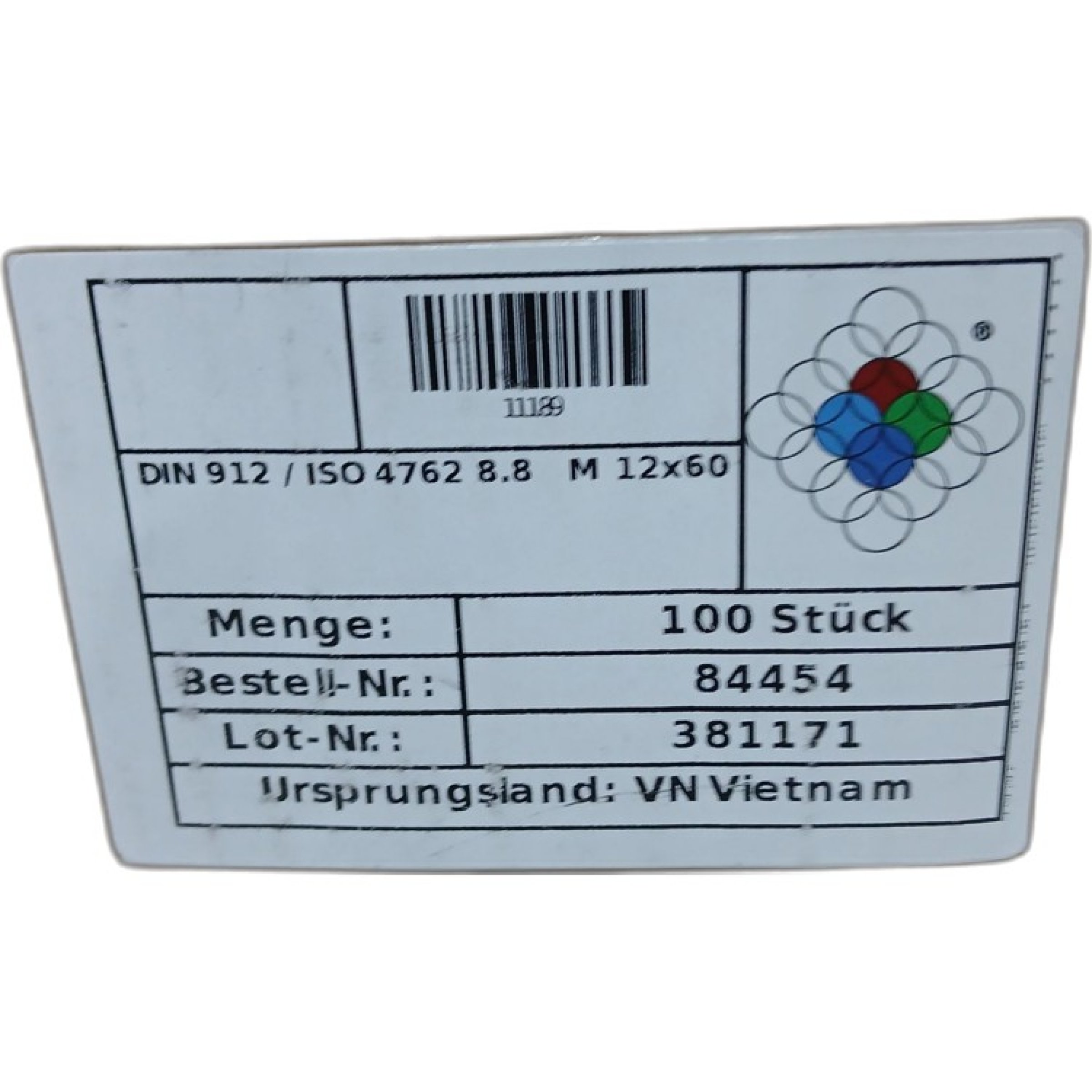 1 Packung Zylinderschrauben mit ISK M12x60 100stk