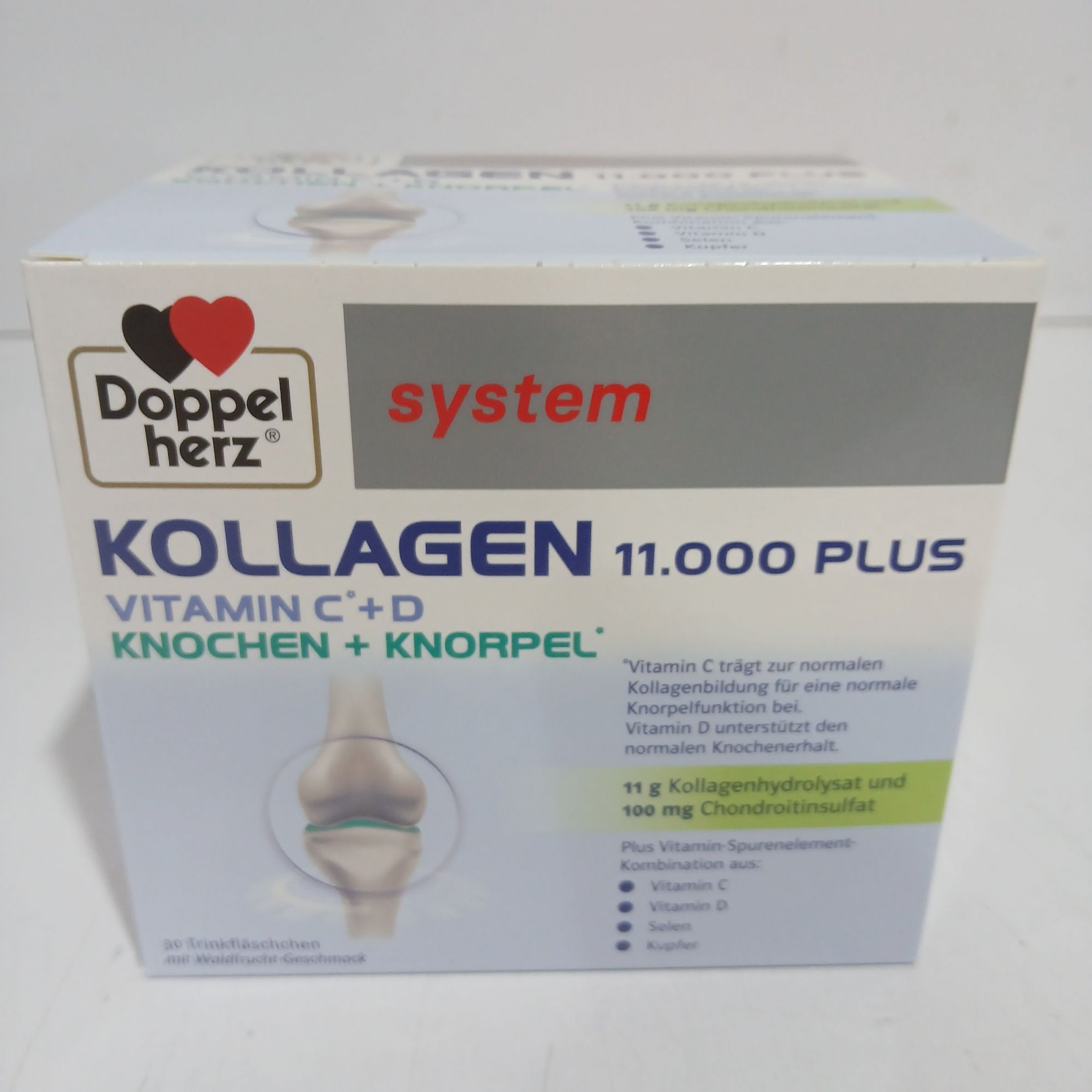 1 Packung Doppel Herz Kollagen 11.000 Plus Vitamin C+D Knochen + Knorpel 30x25ml