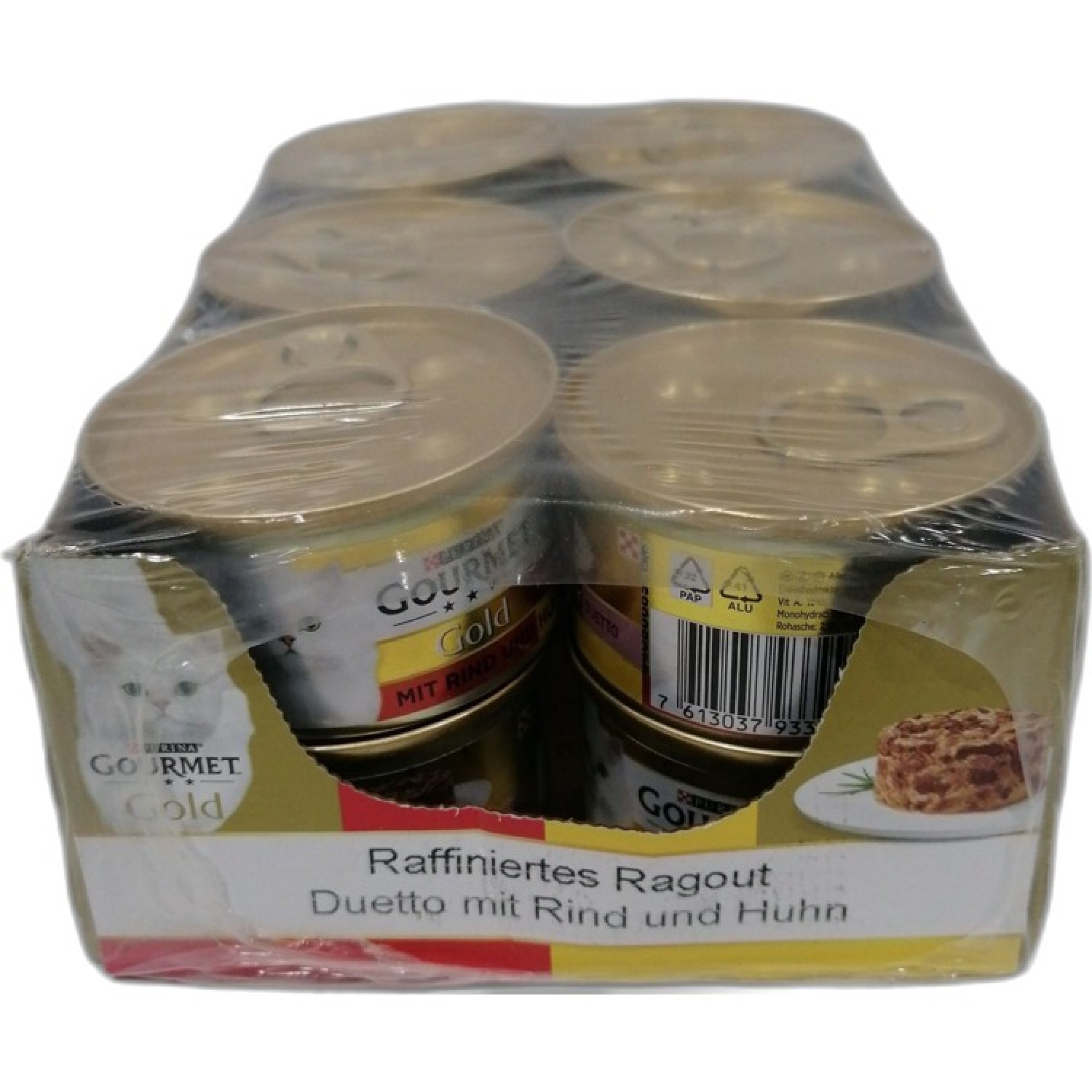 1 Packung Purina Gourmet Gold Raffiniertes Ragout mit Rind/Huhb 12x85g