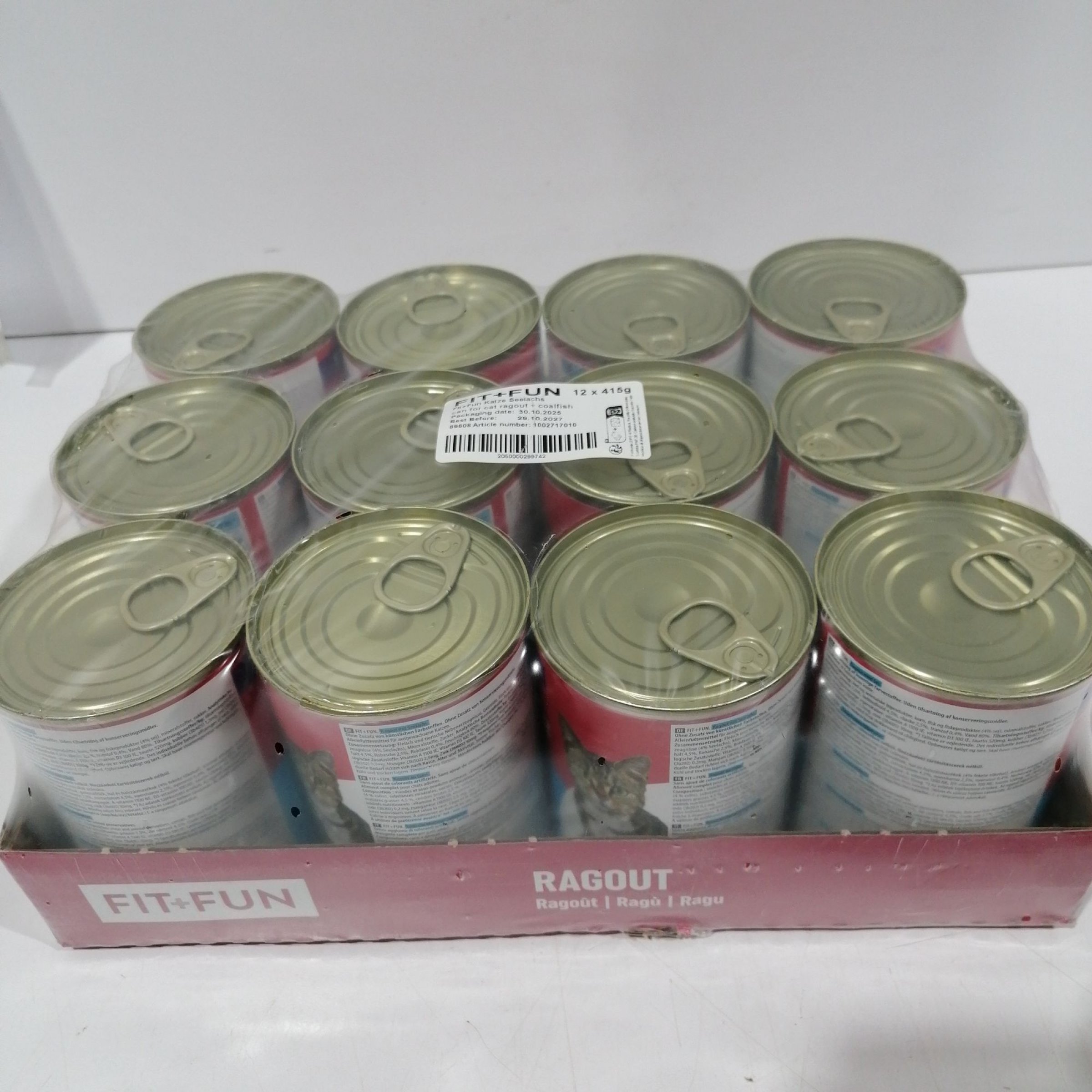 1 Packung Fit+Fun Katze Ragout Seelachs 12x415g