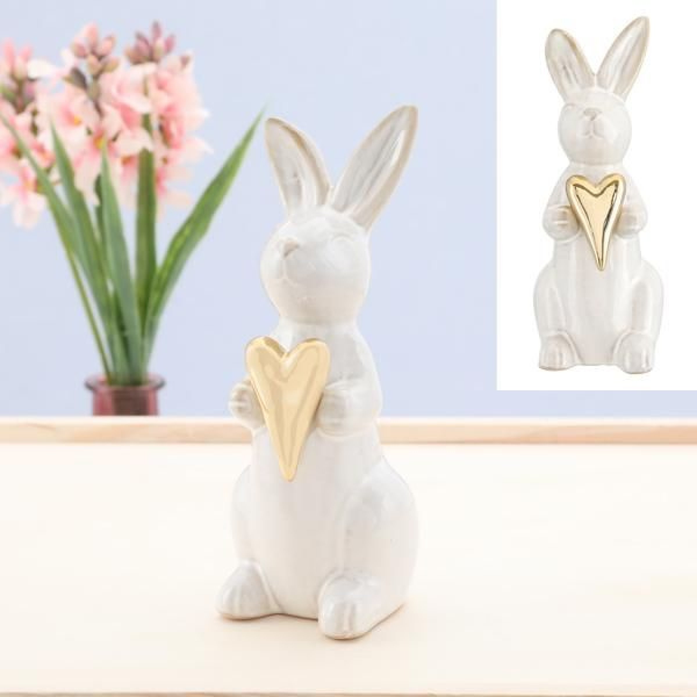 1 Stk. Hase mit goldenem Herz, weiß, ca.15cmH