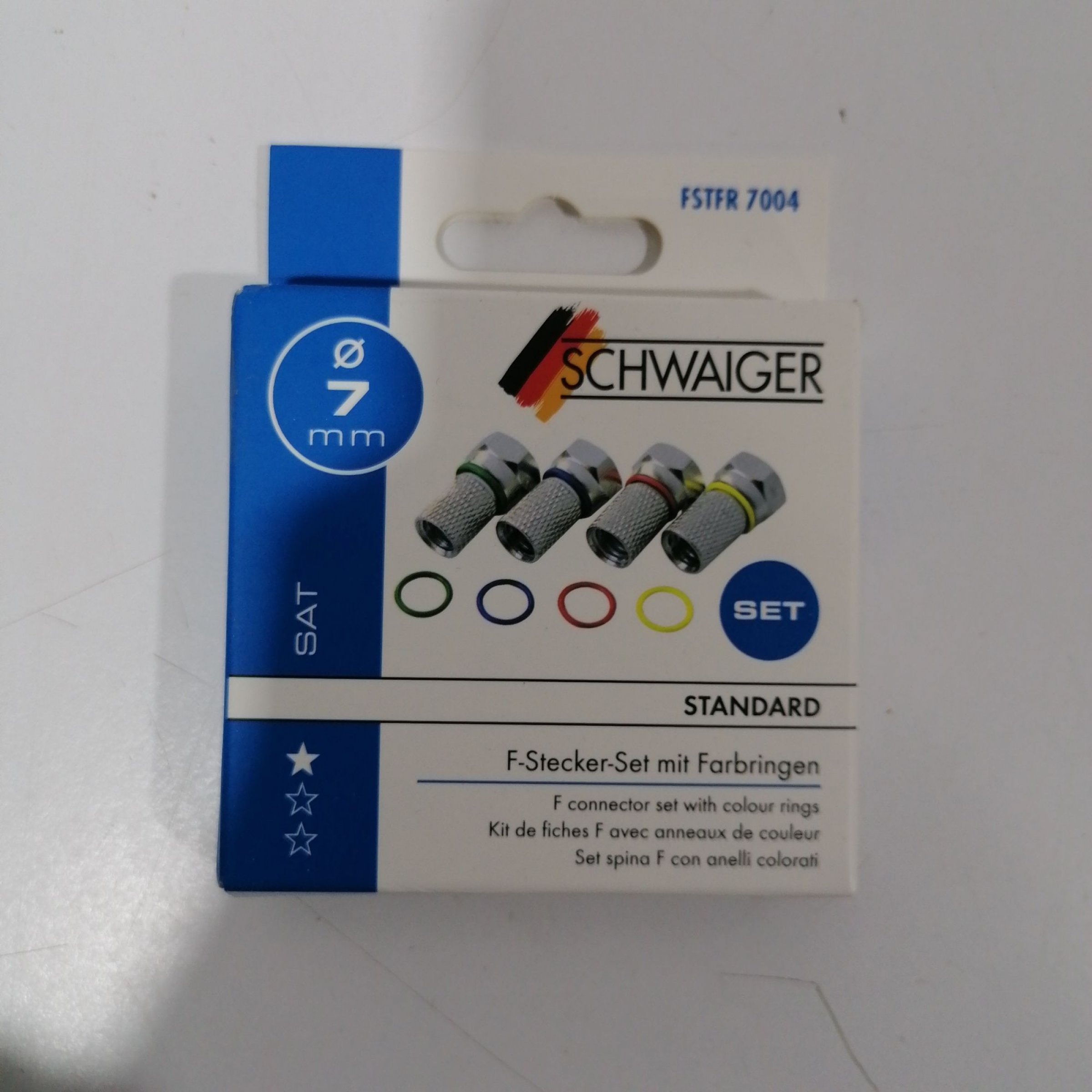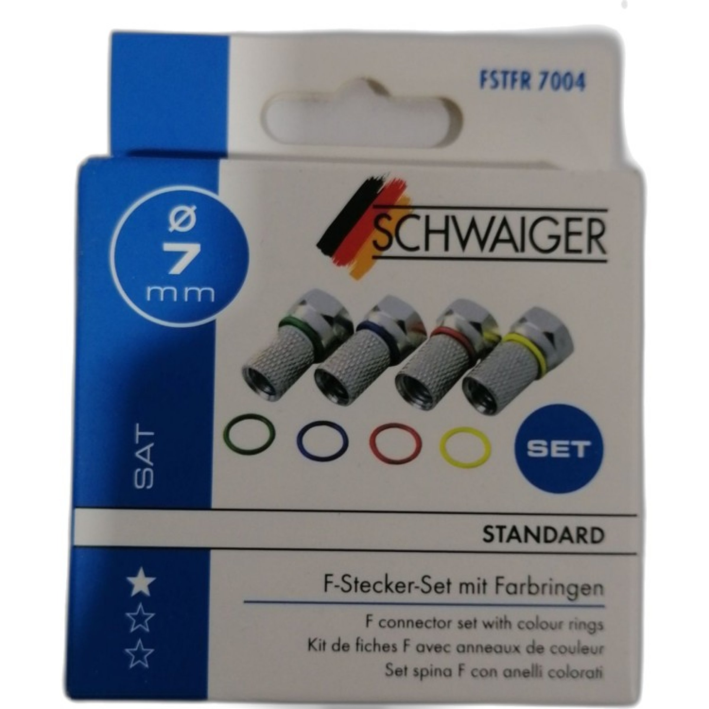 1 Packung Schwaiger F-Stecker Set mit Farbringen 7mm