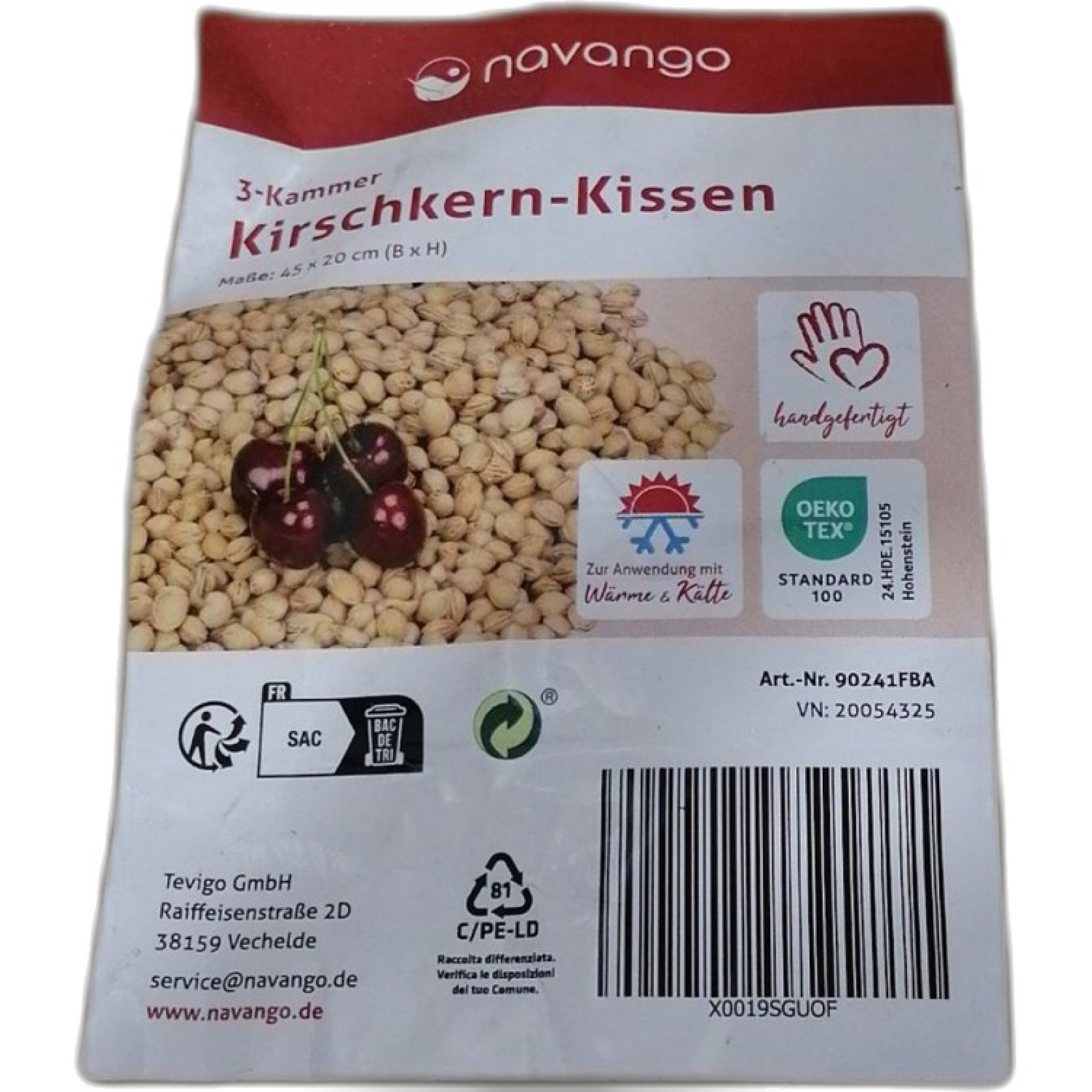 1 Stk. Navango 3-Kammer Kirschkernkissen 45x20cm