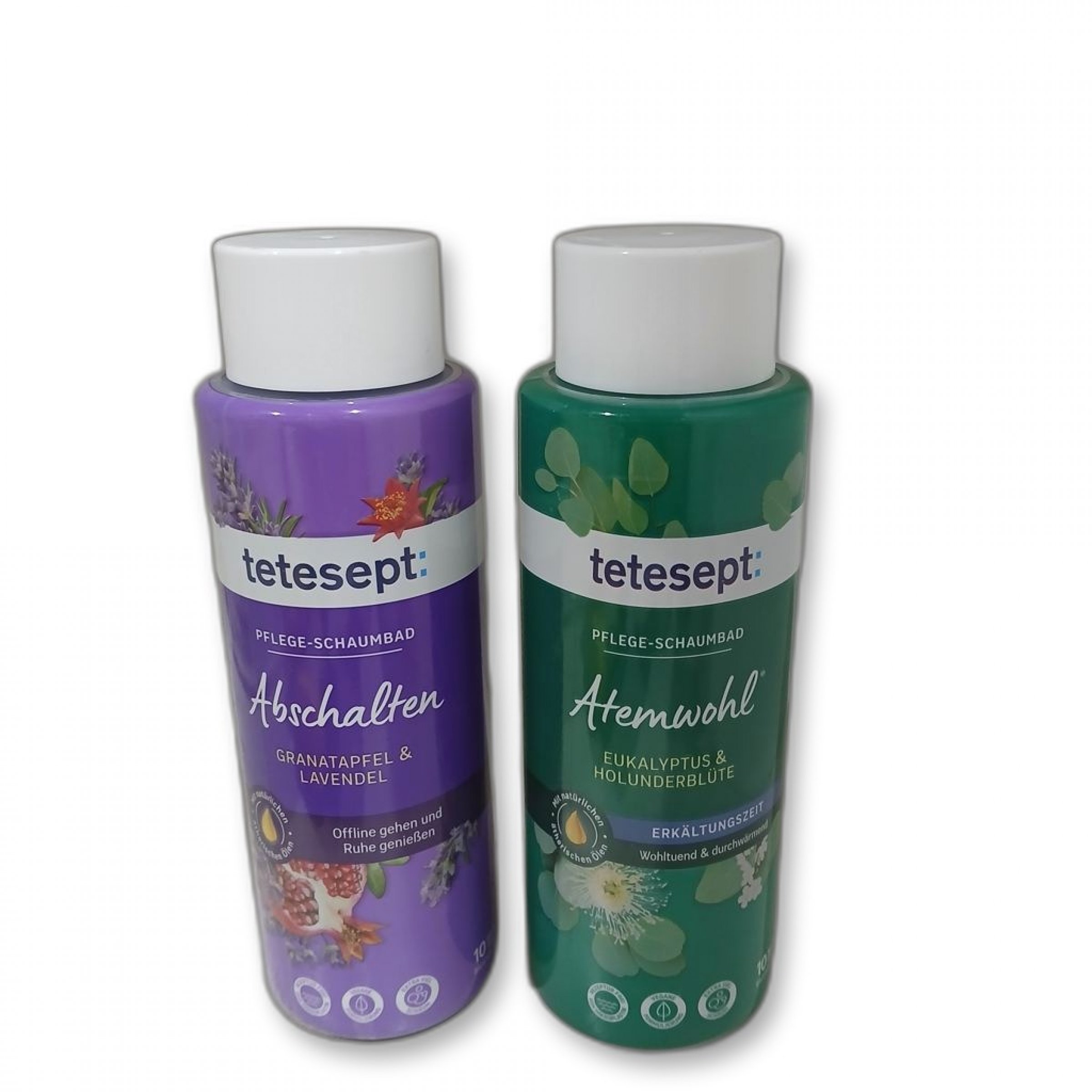 1x 400 ml Abschalten (Granatapfel und Lavendel), 1x 400 ml Atemwohl (Eukalyptus und Holunderblüte)