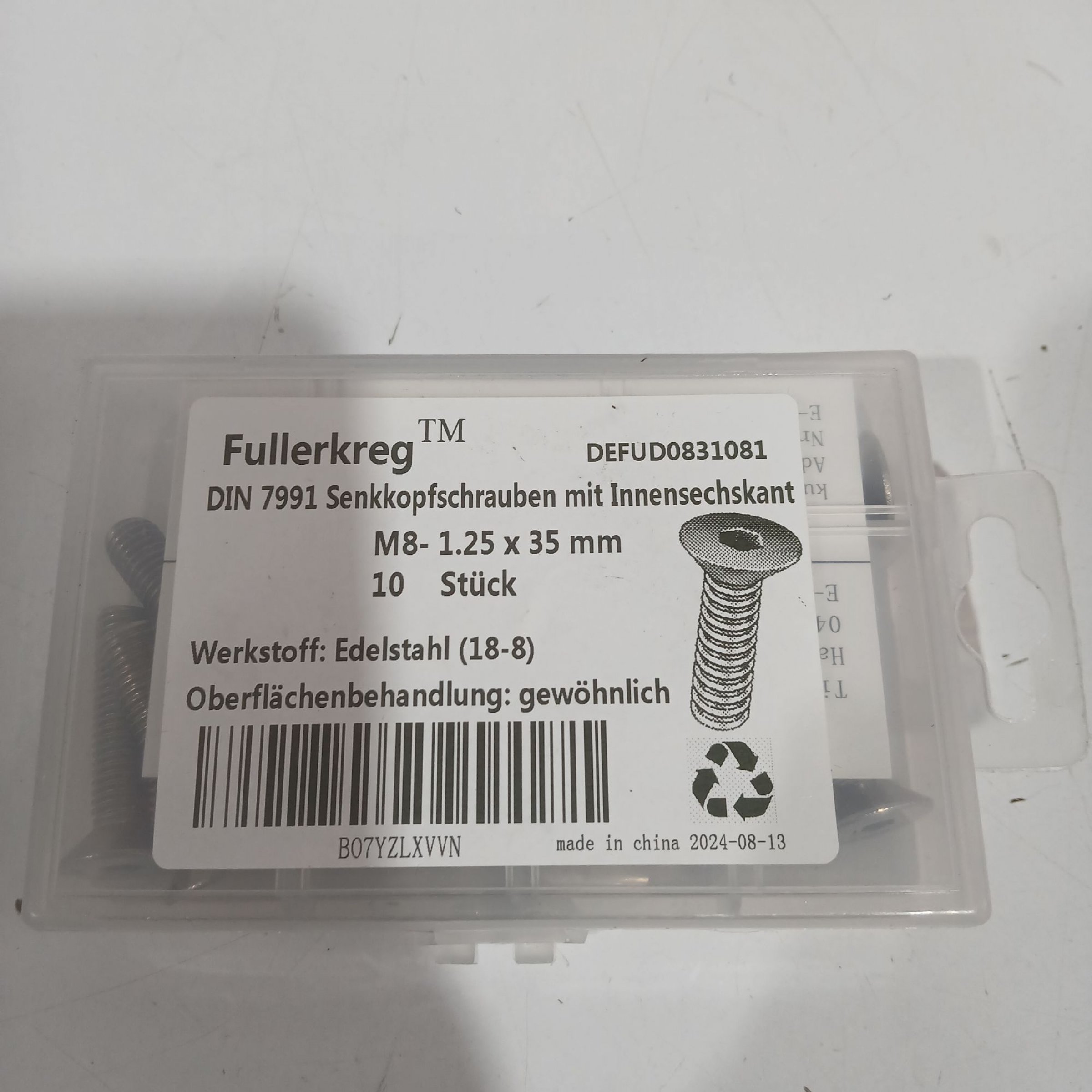 1 Packung Fullerkreg DIN 7991 Senkkopfschrauben mit Innensechskant M8-1.25 x 35mm