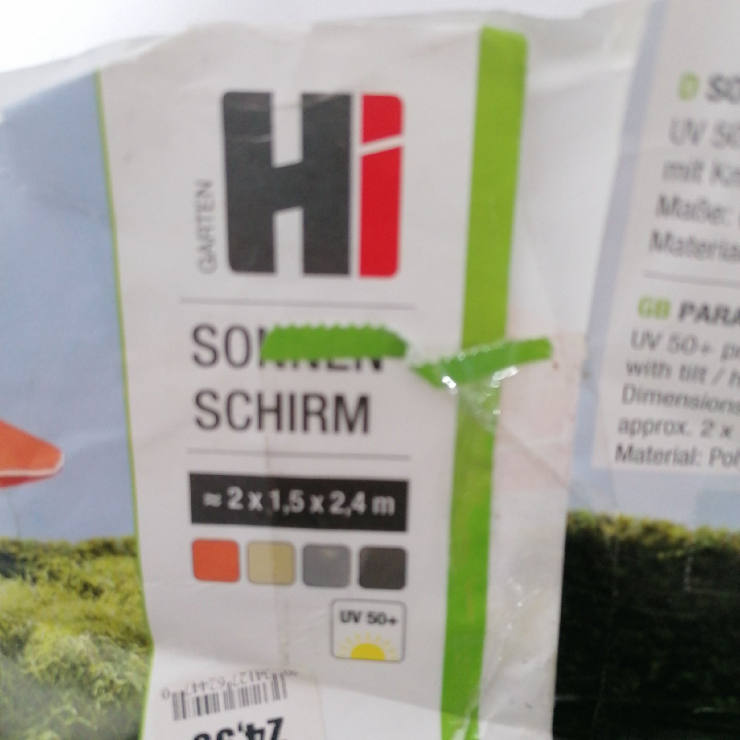1 Stk. Hi Garten Sonnenschirm 2x1,5mx2,4m grau 62447