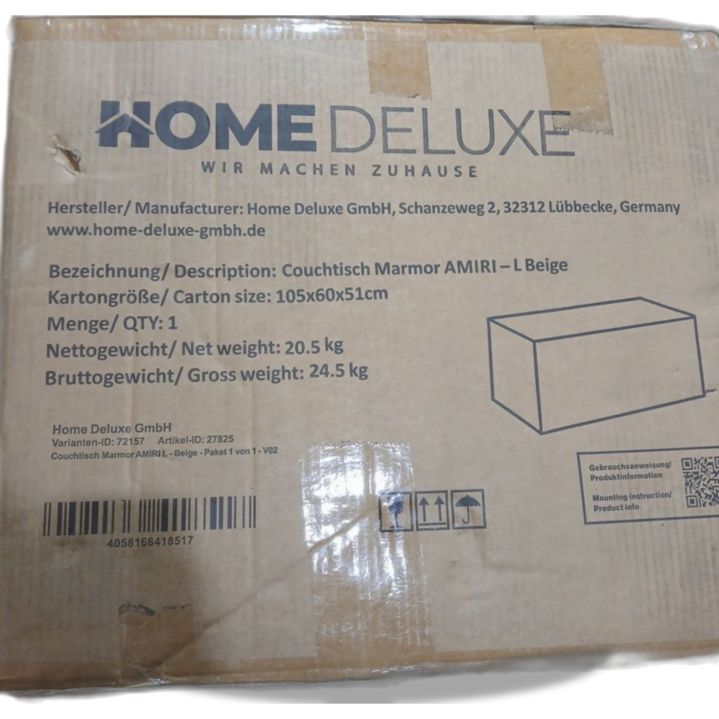 1 Stk. Home Deluxe Couchtisch Marmor Amiri L Beige