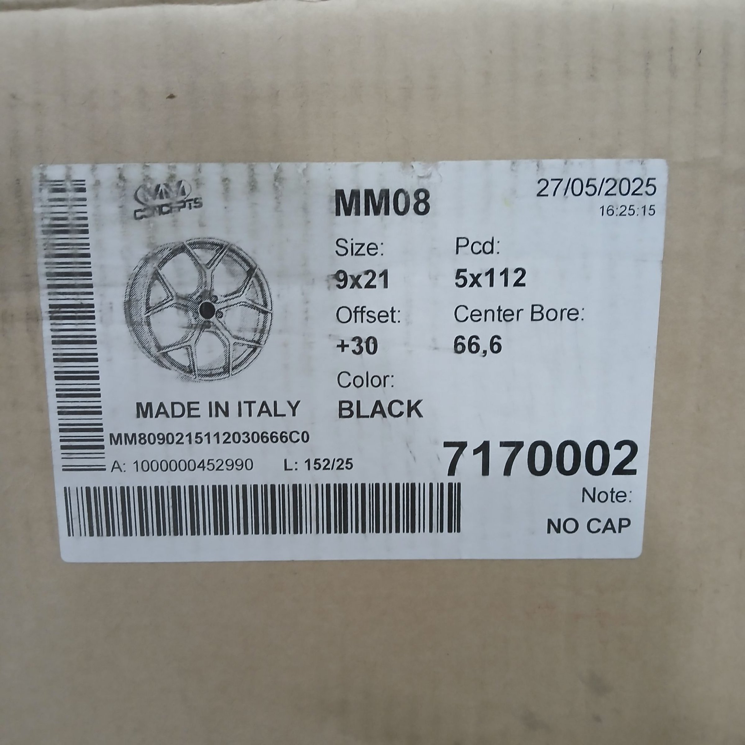 1 Stk. MM Sports Felge 9x21 5x112 +30 schwarz