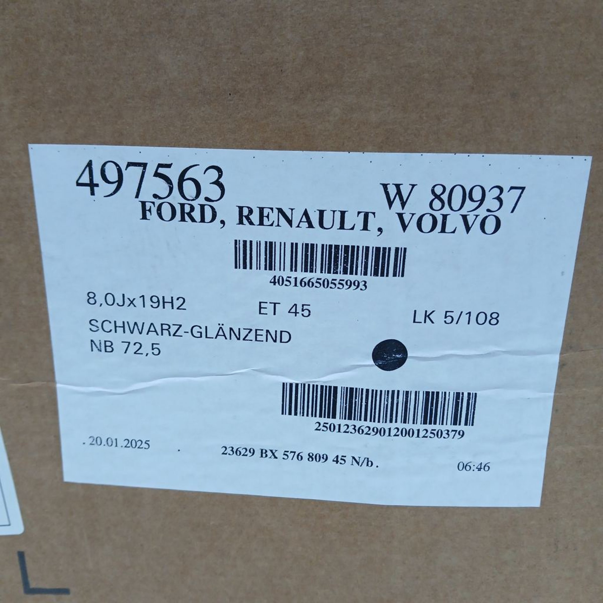 20.01.2025. 8,0Jx19H2, LK 5/108, NB 72,5, schwarz-glänzend