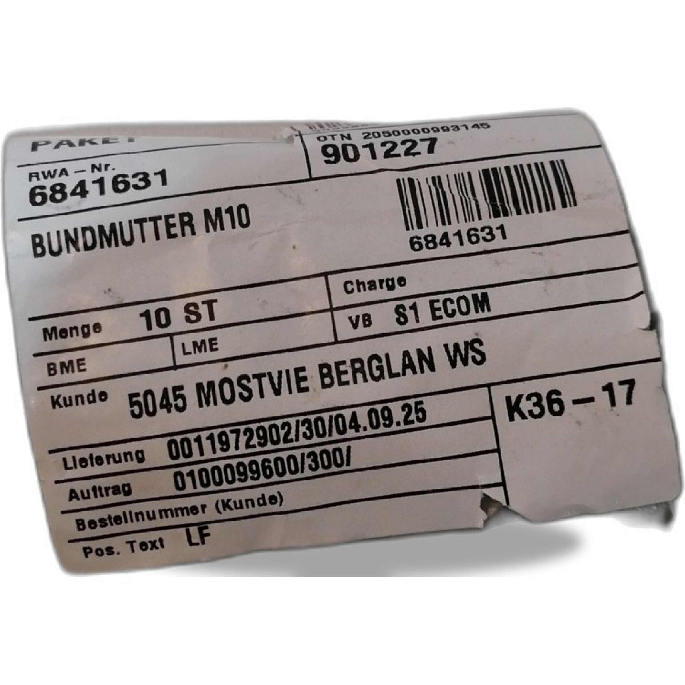 1 Stk. Bundmutter M10 K36-17