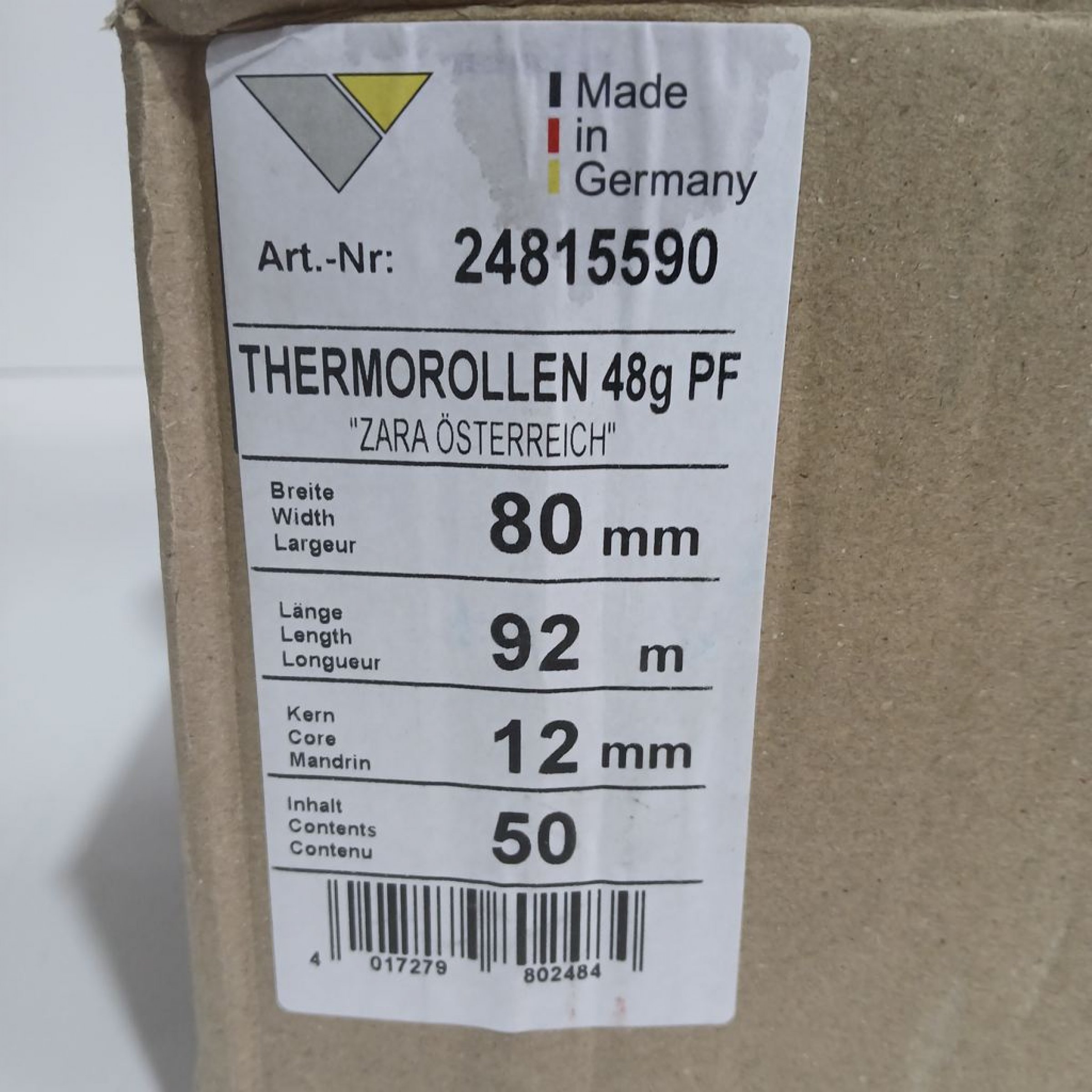 1 Stk. Thermorollen 48g PF 80 mm 92m 50Rollen