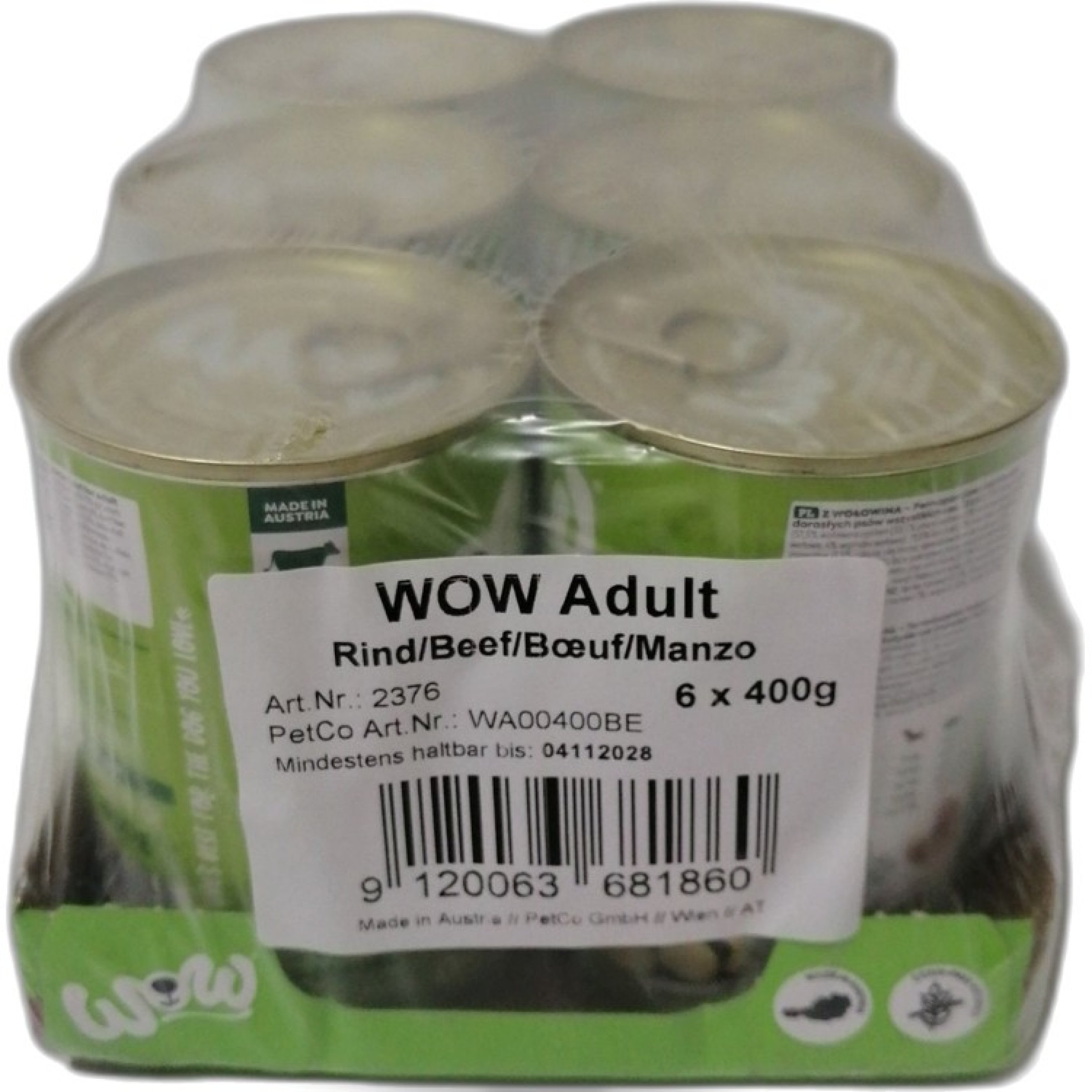 1 Packung Wow Adult Rind 6x400g