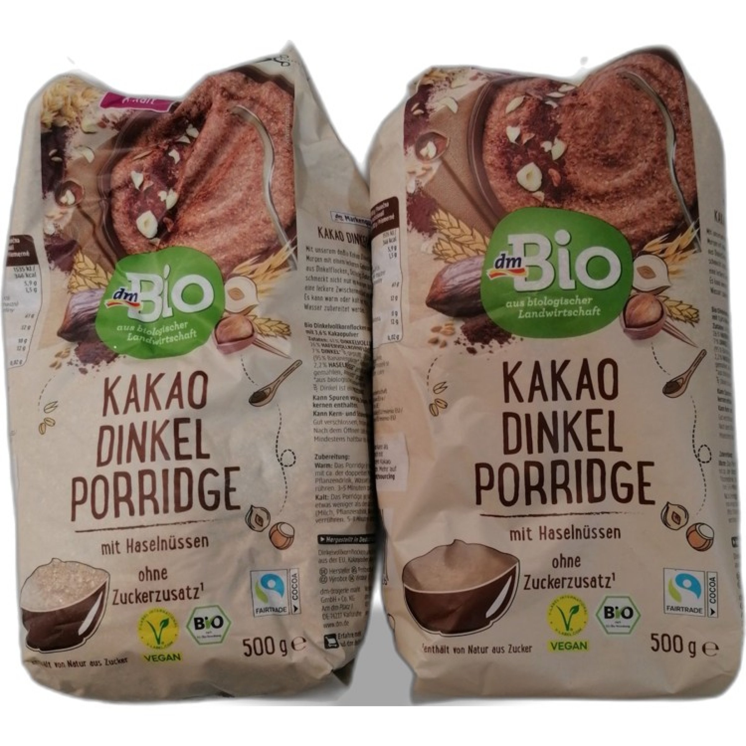 1 Packung Bio Kakao Dinkel Porridge 2x500g