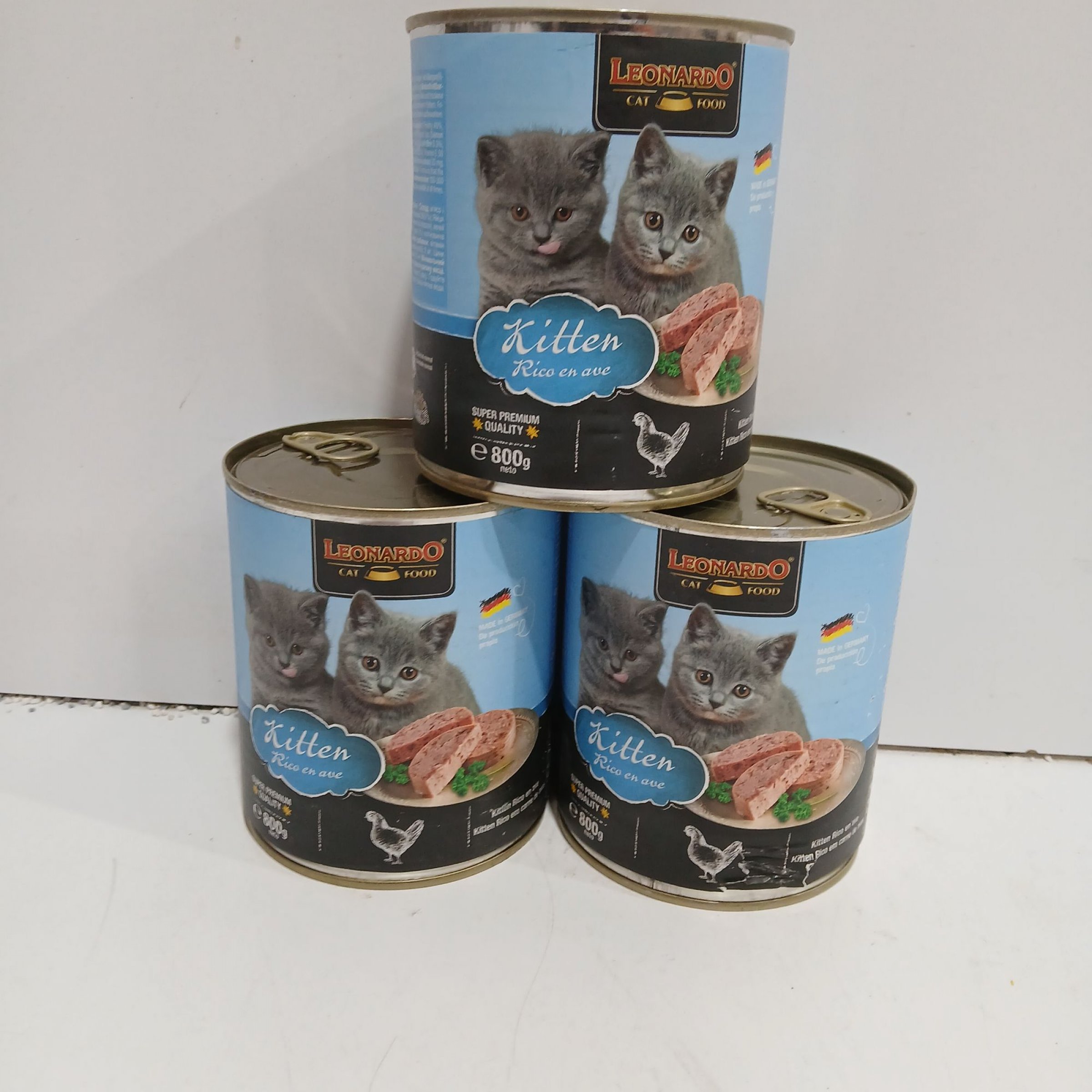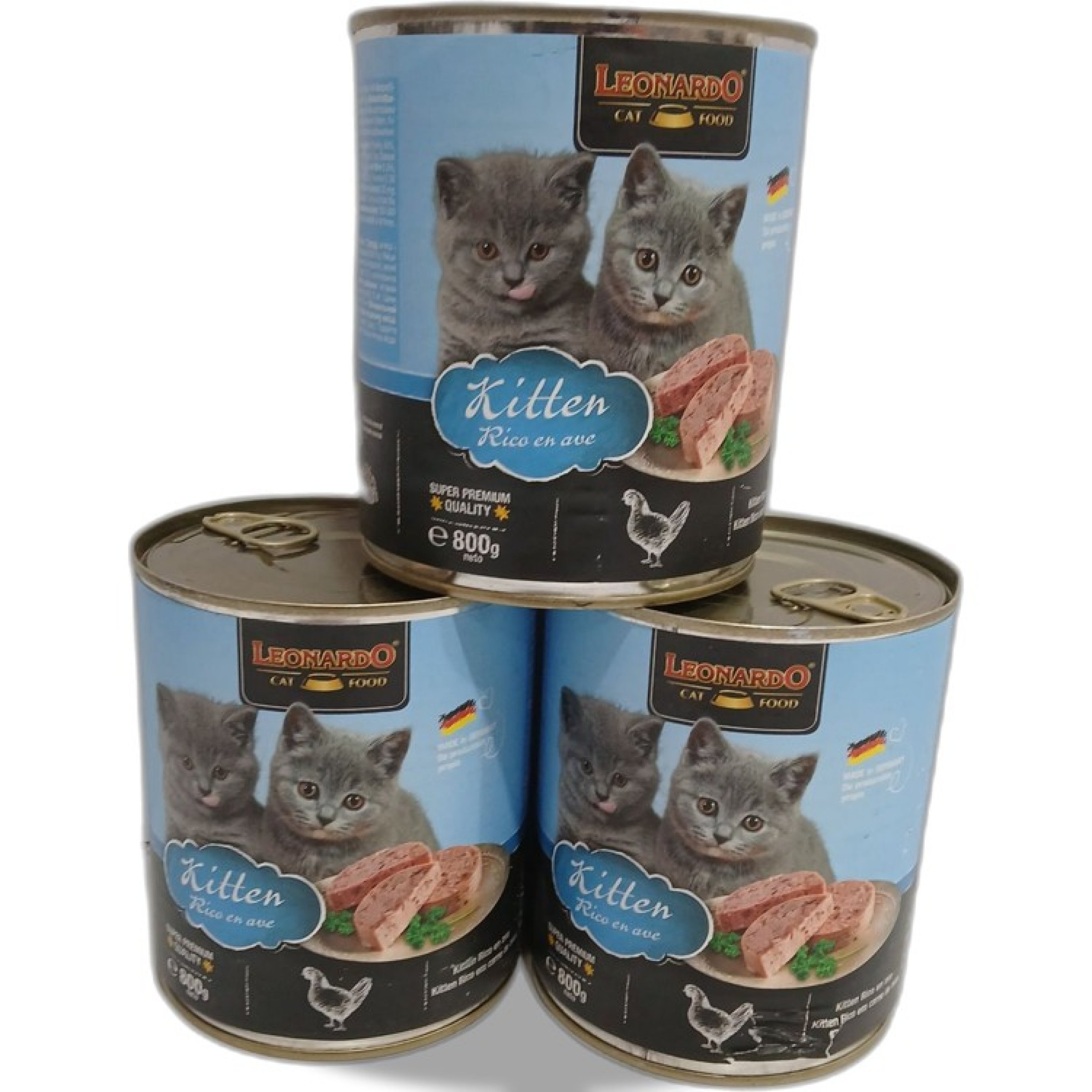 1 Set Leonardo Cat Food Kitten Rico en Ave 3×800G