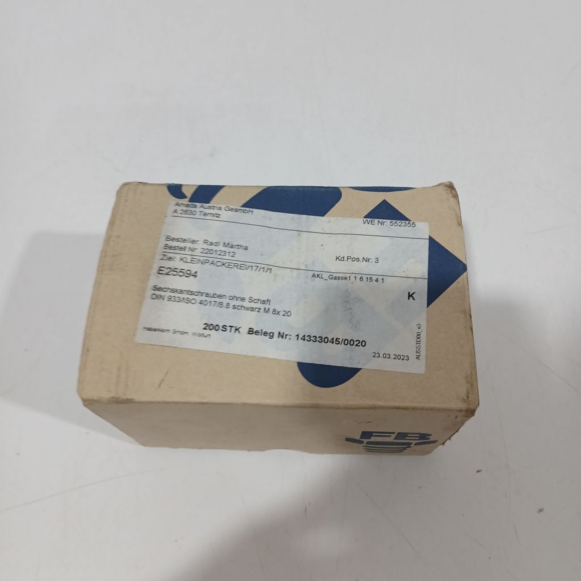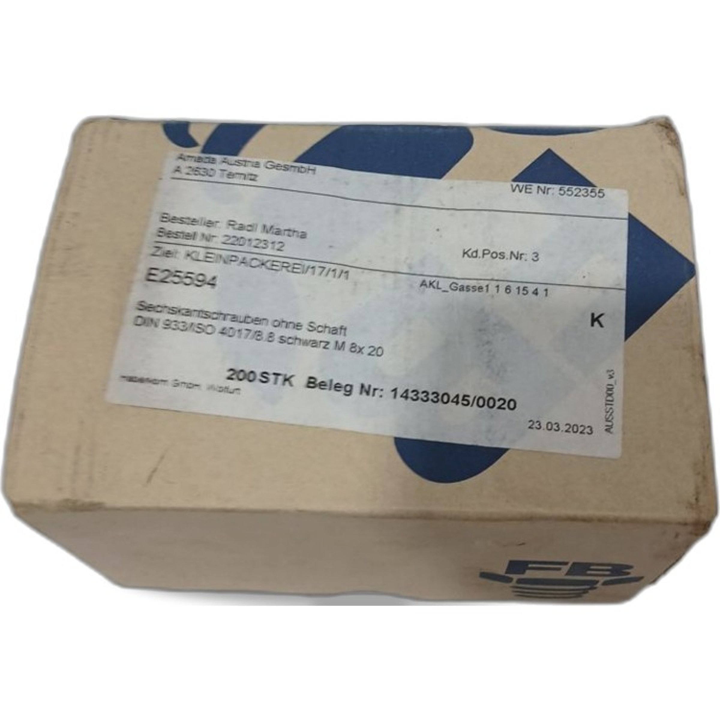 Sechskantschrauben DIN 933 (ISO 4017) 8.8 M8 x 20
