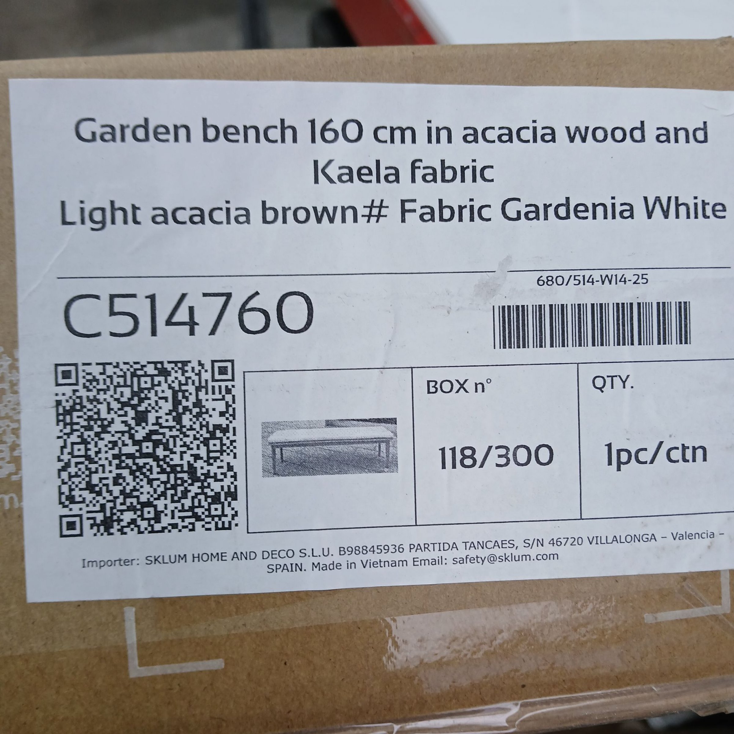 1 Stk. Sklum Garden bench 160cm in acacia wood and Kaeöa fabric