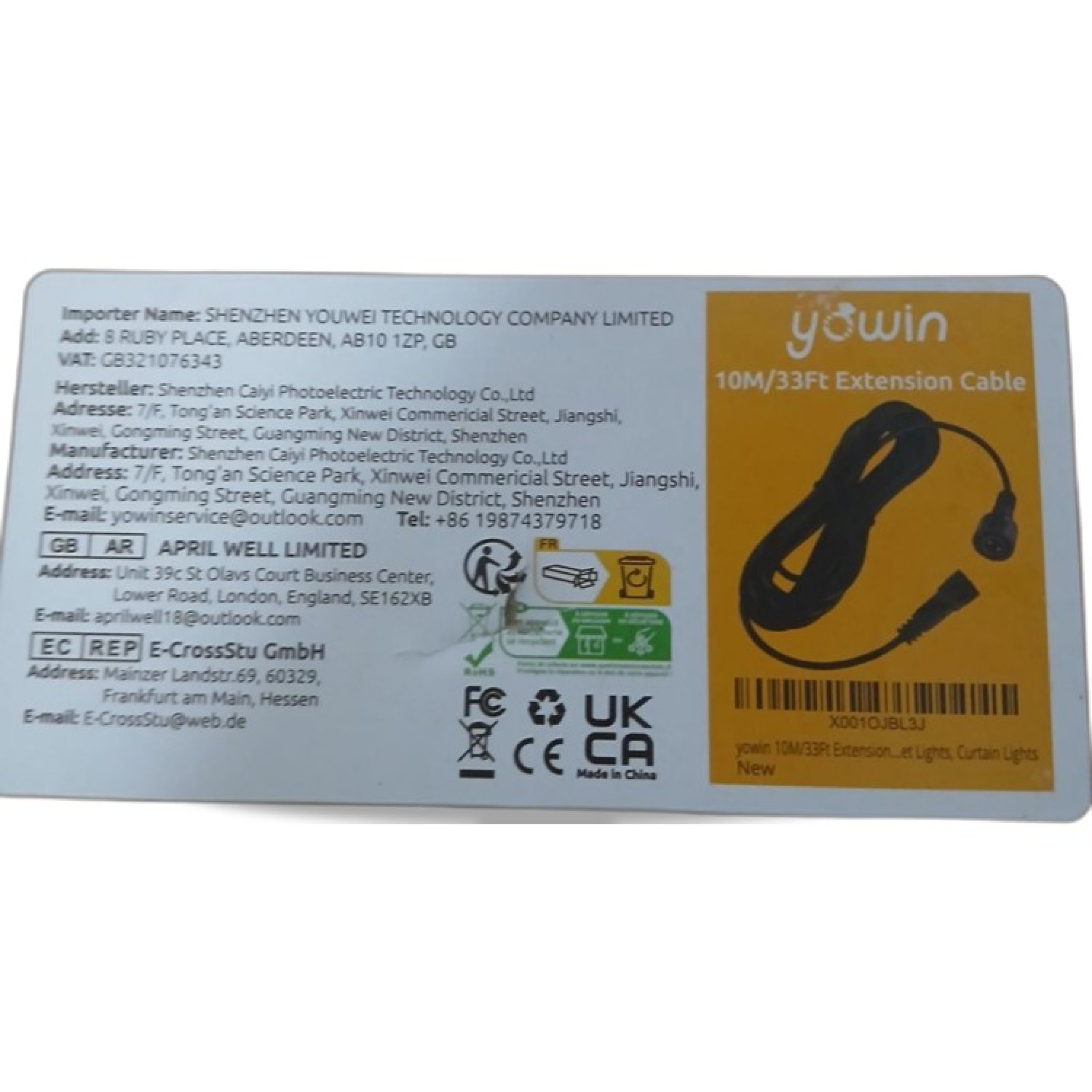 1 Stk. yowin 10M/33Ft Extension Cable
