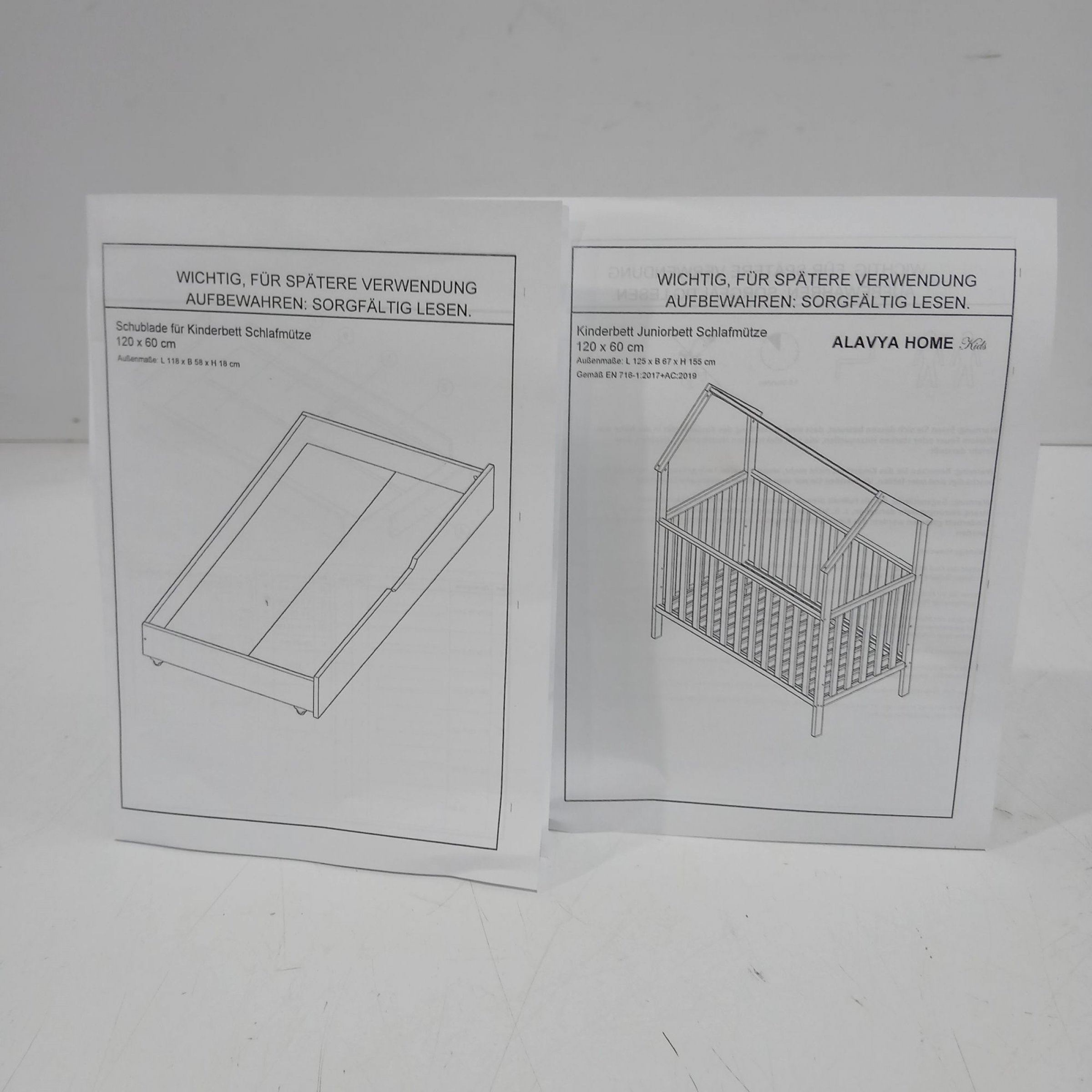 1 Stk. Alavya Home Babybett 120x60cm Ella ,Schublade 120x60cm aus Massievem Kiefernholz