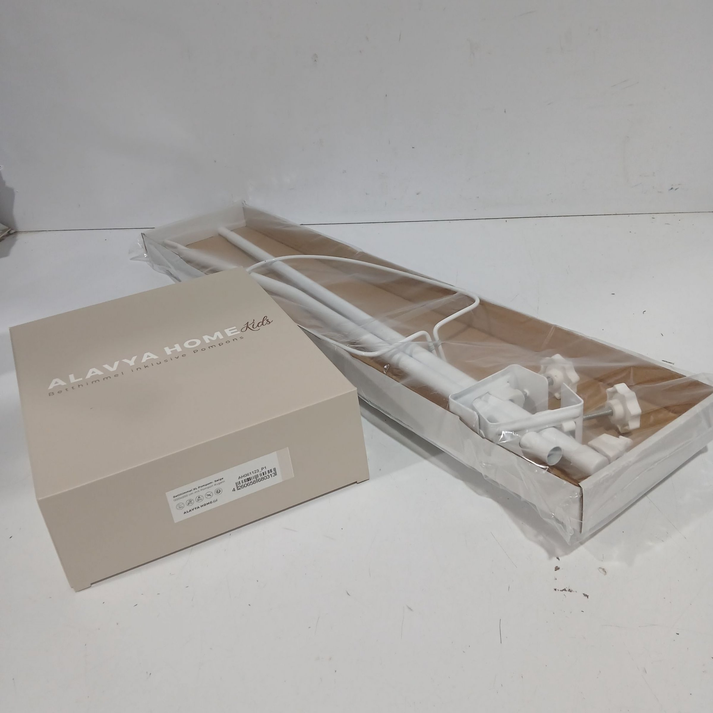 1 Stk. Alavya Home Betthimmel XL Pompom beige + Himmelstange 1200x200cm
