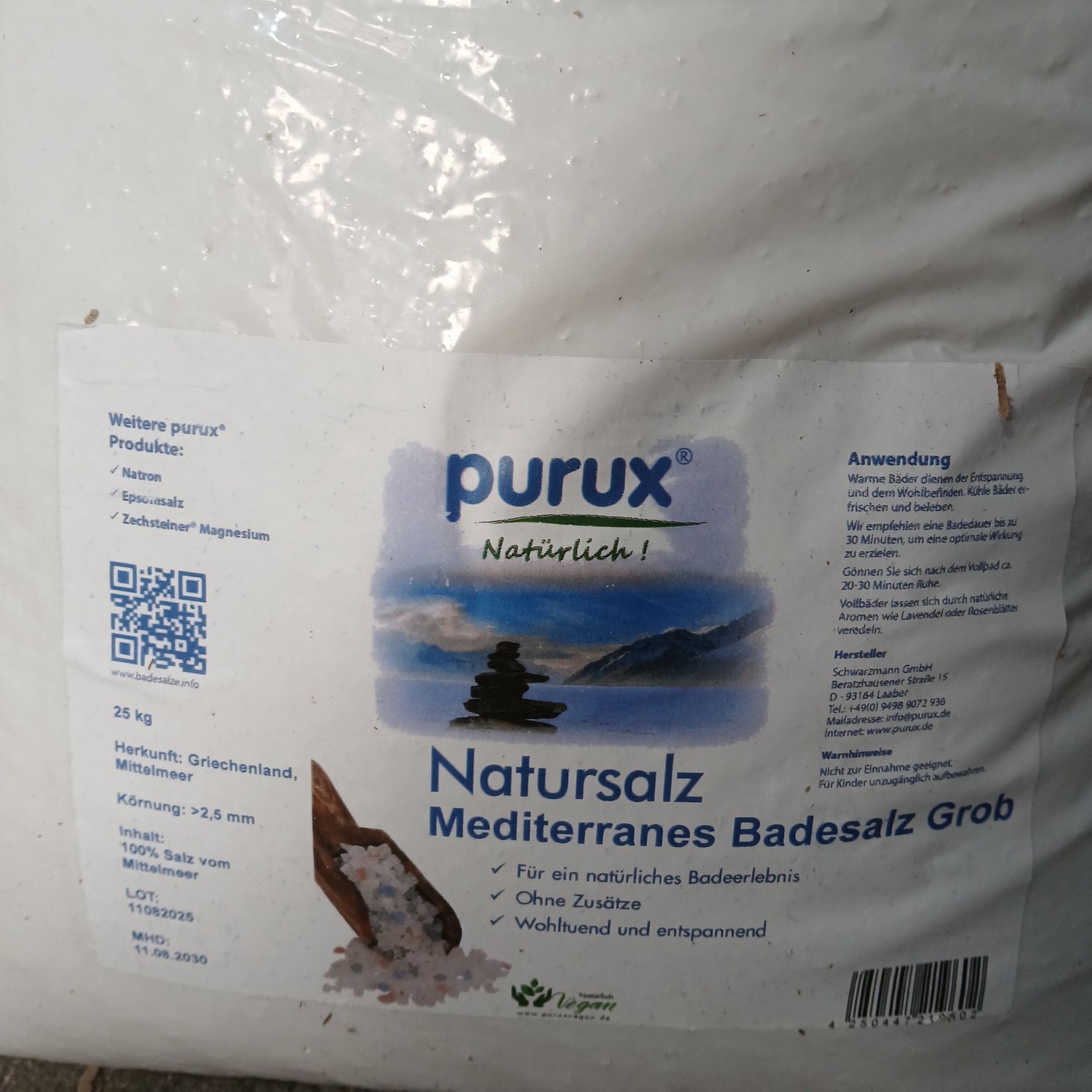 Purux Natursalz Badesalz Grob 25kg