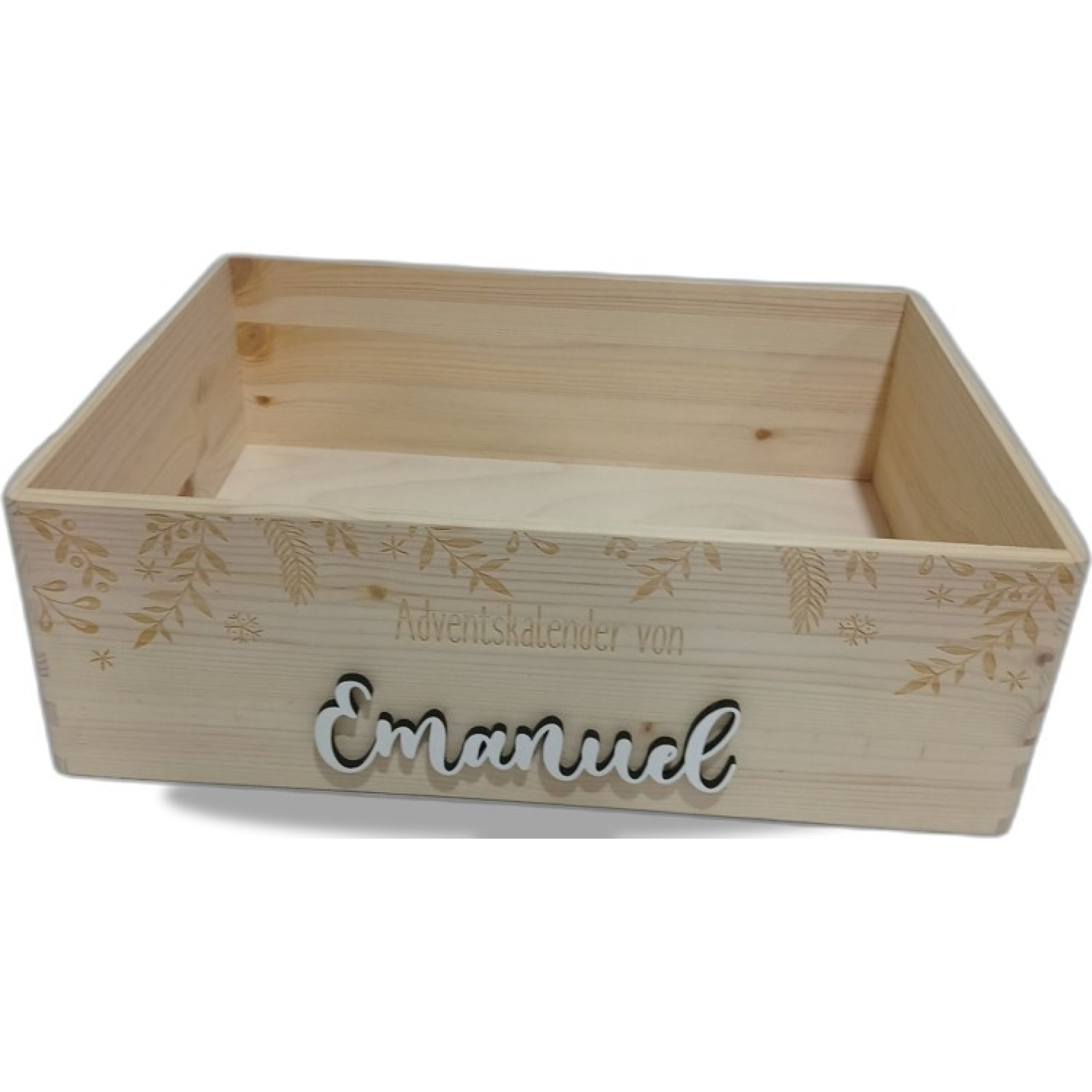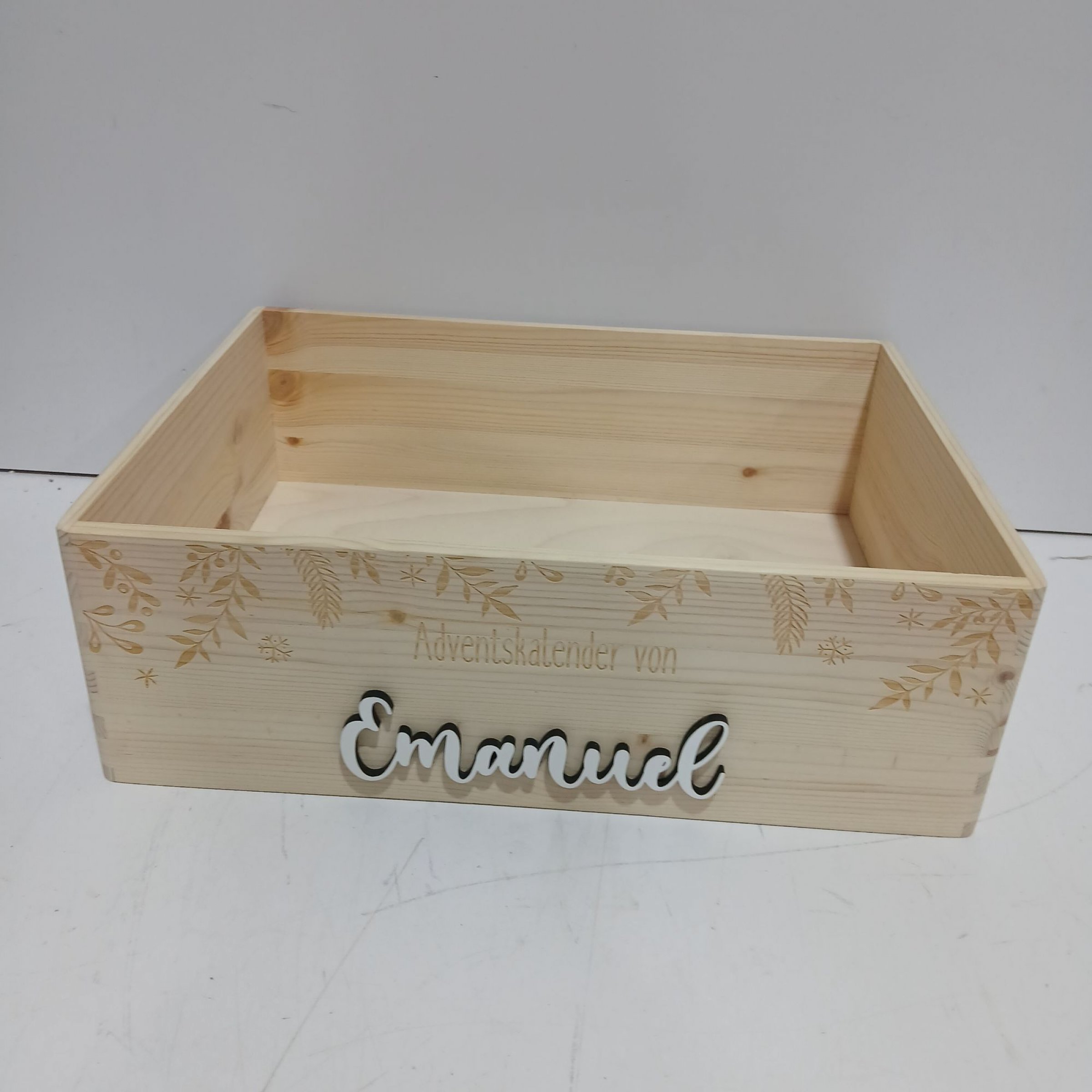 1 Stk. Hellomini Holzkiste "Adventskalender von Emanuel" ca 12×30×40 cm