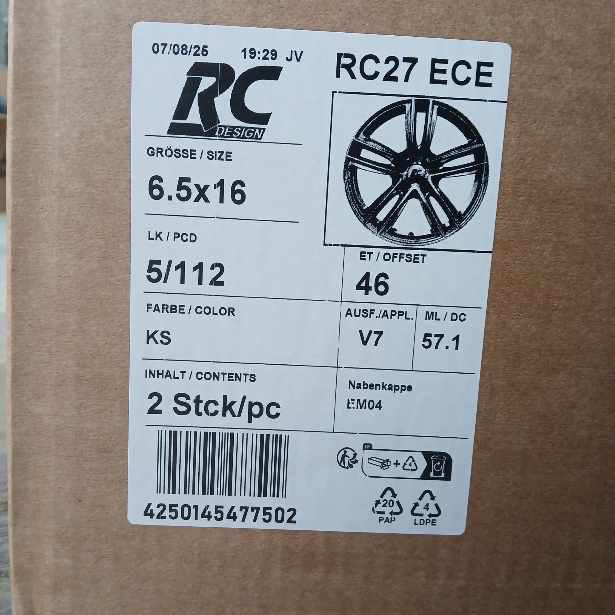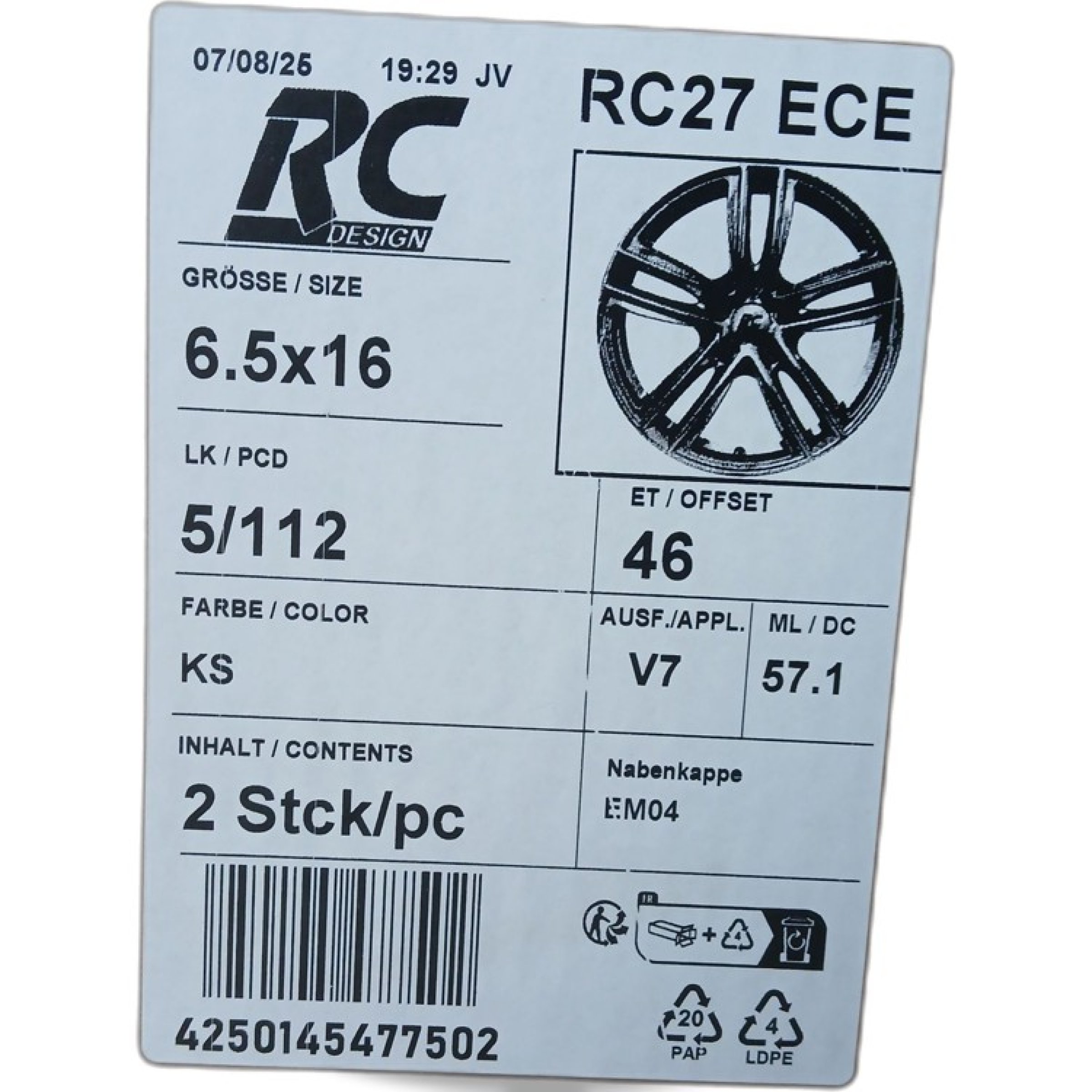 2 Stk. RC Felge 6,5x16 5/112 ET46 KS