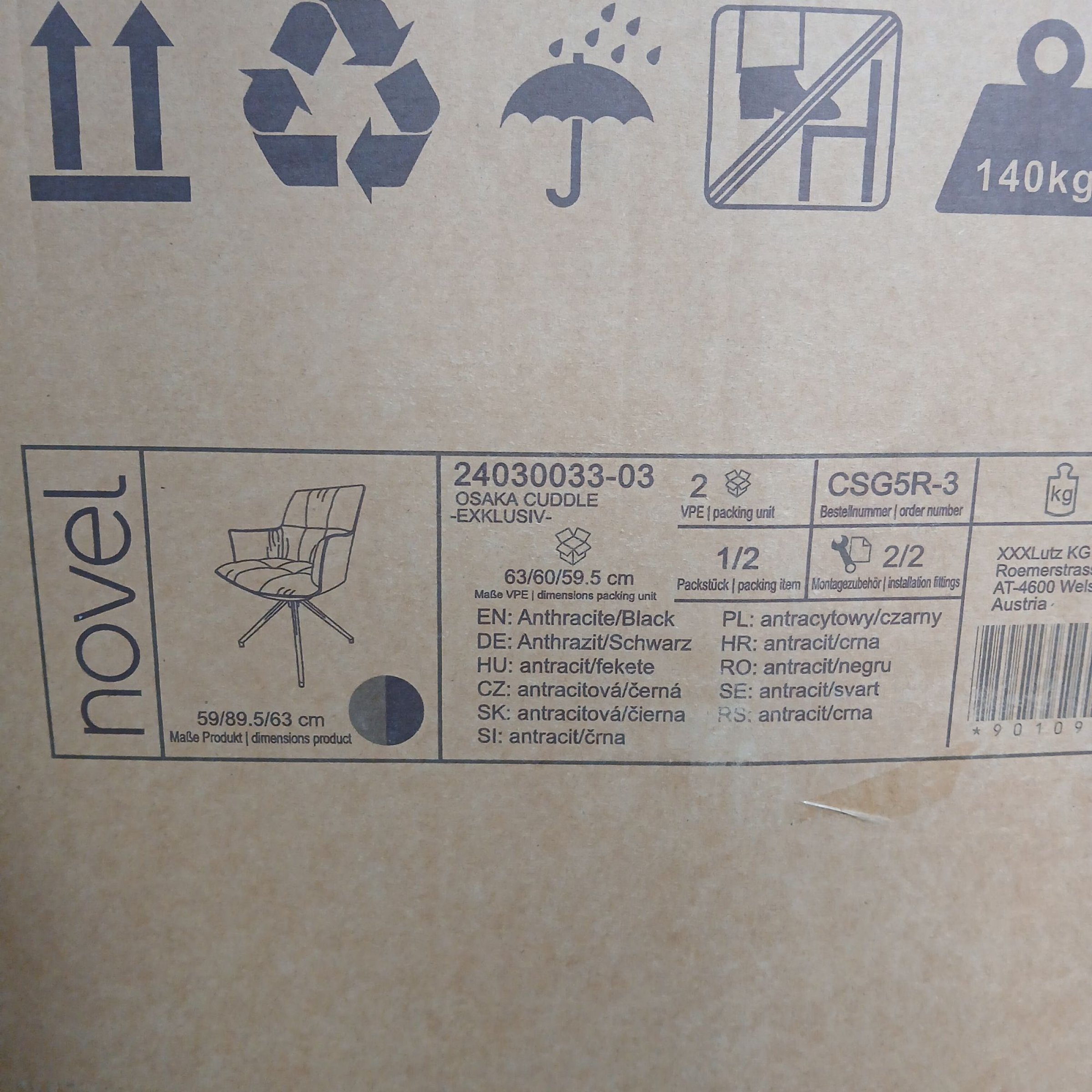 1 Stk. Novel Stuhl Osaka Cuddle 24030033-03 Paket 1/2 59x89.5x63cm