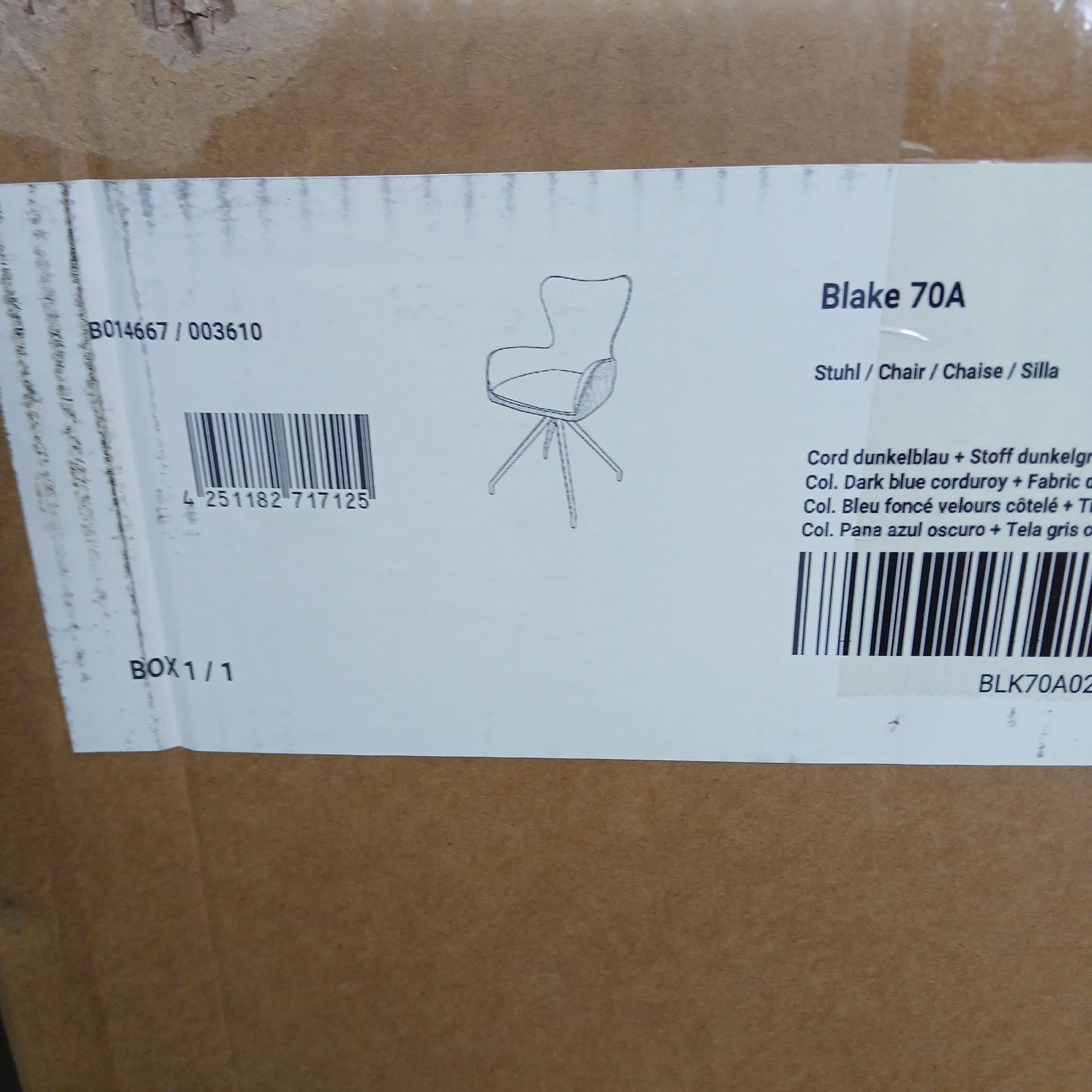 1 Stk. Blake 70A Stuhl Cord Dunkelblau