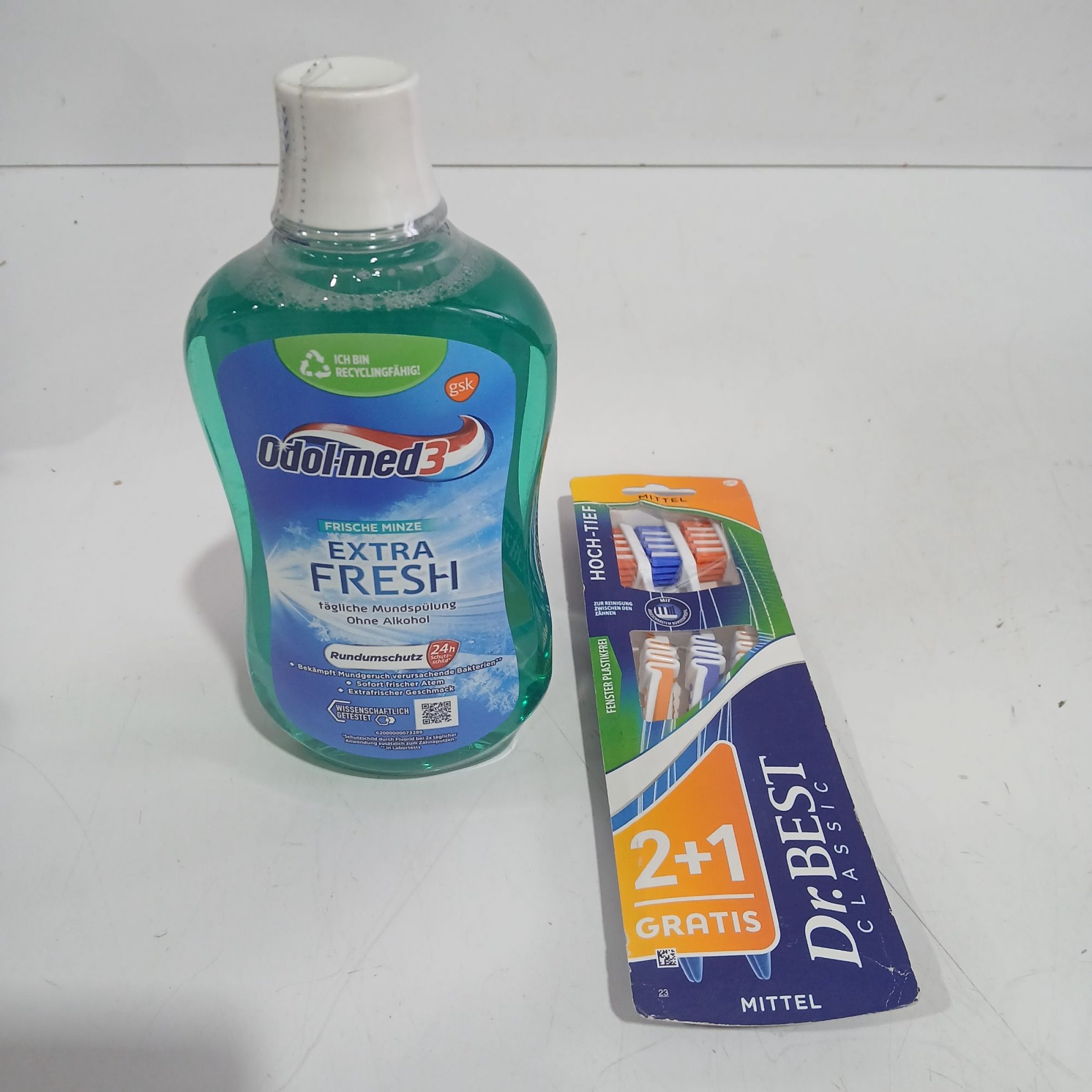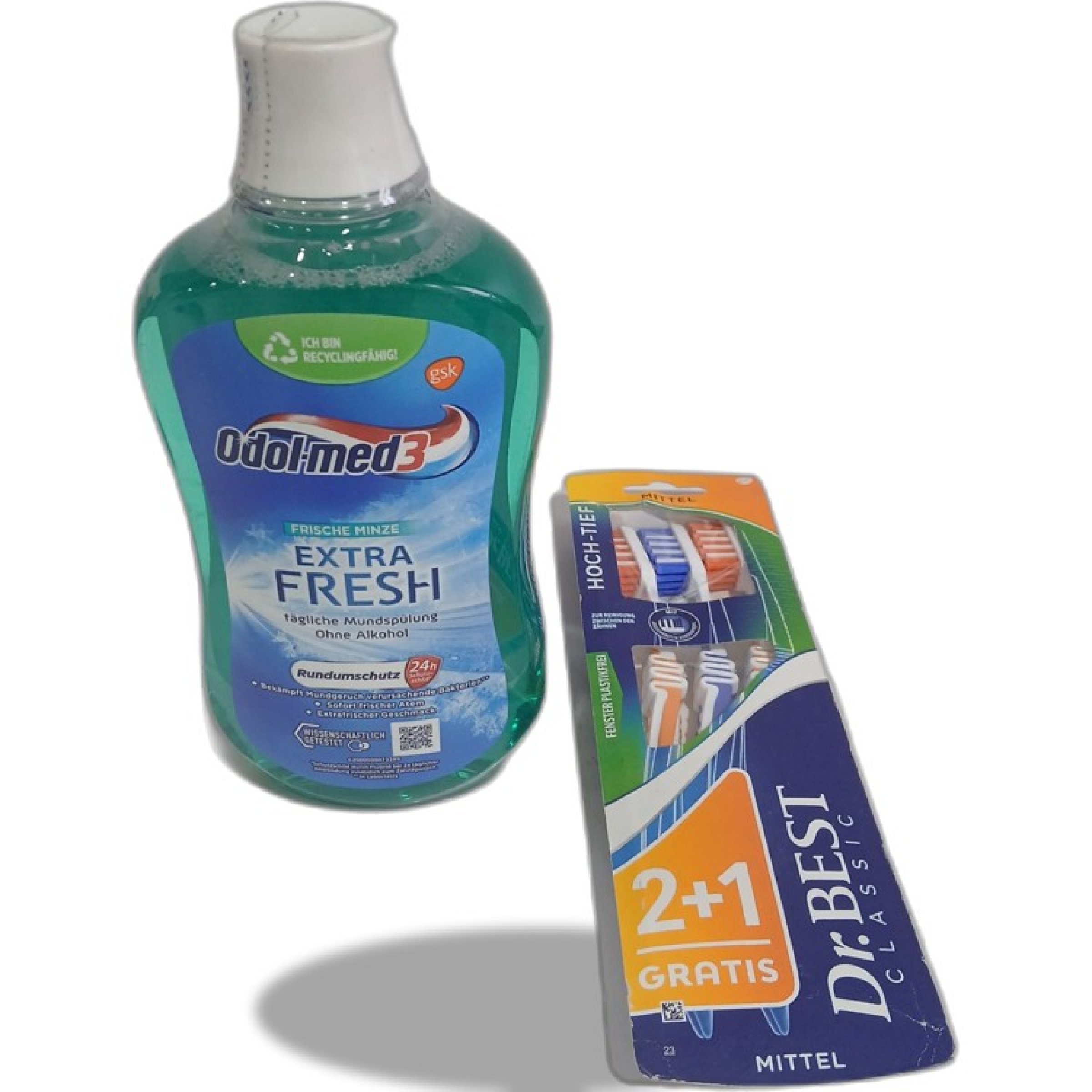 1 Set Odol med Munspülung 500ml & Dr. Best Zahnbürsten mittel 3er Set
