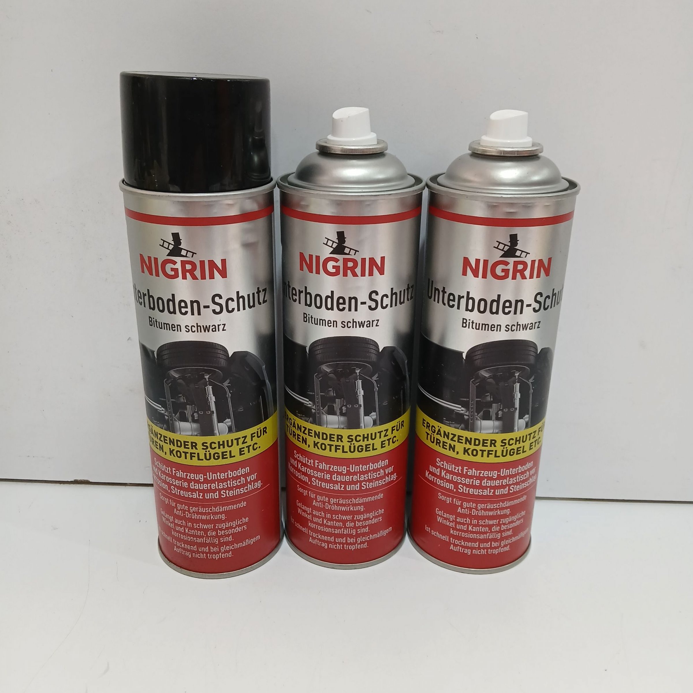 1 Set Nigrin Unterboden-Schutz Bitumen Schwarz 3×500ml