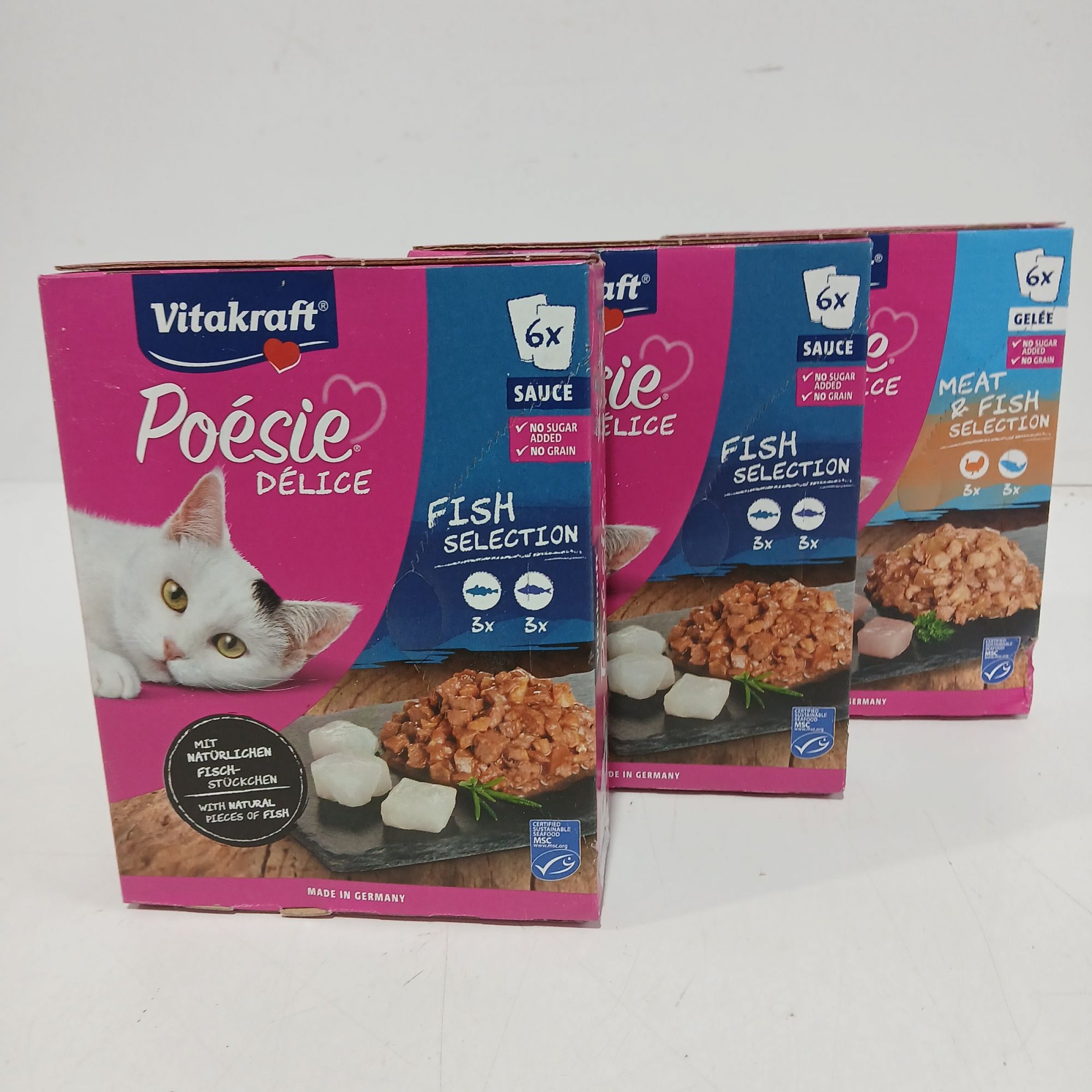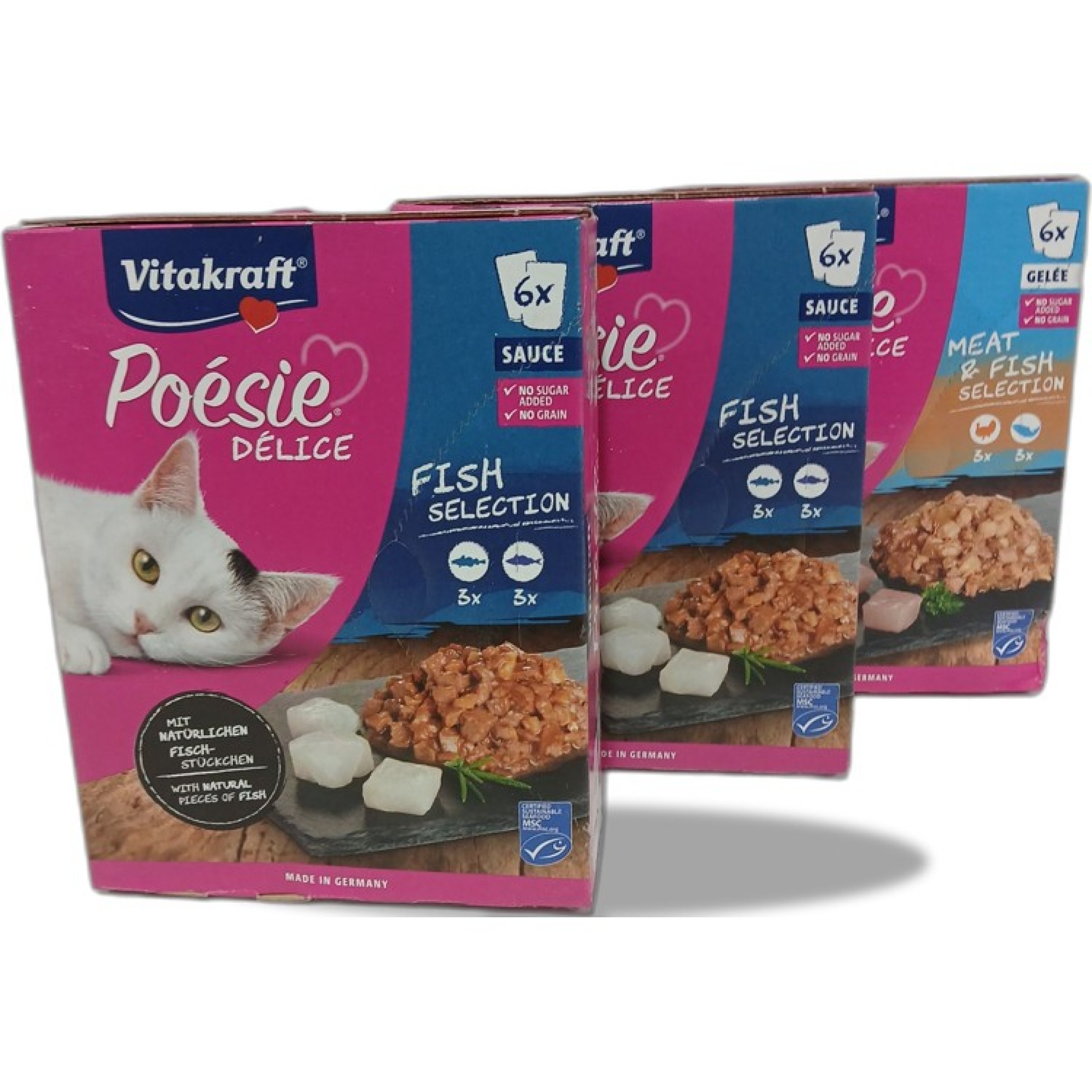 1 Set Vitakraft Katzenfutter Fish und Meat&Fish Selection 3x 6x 85g