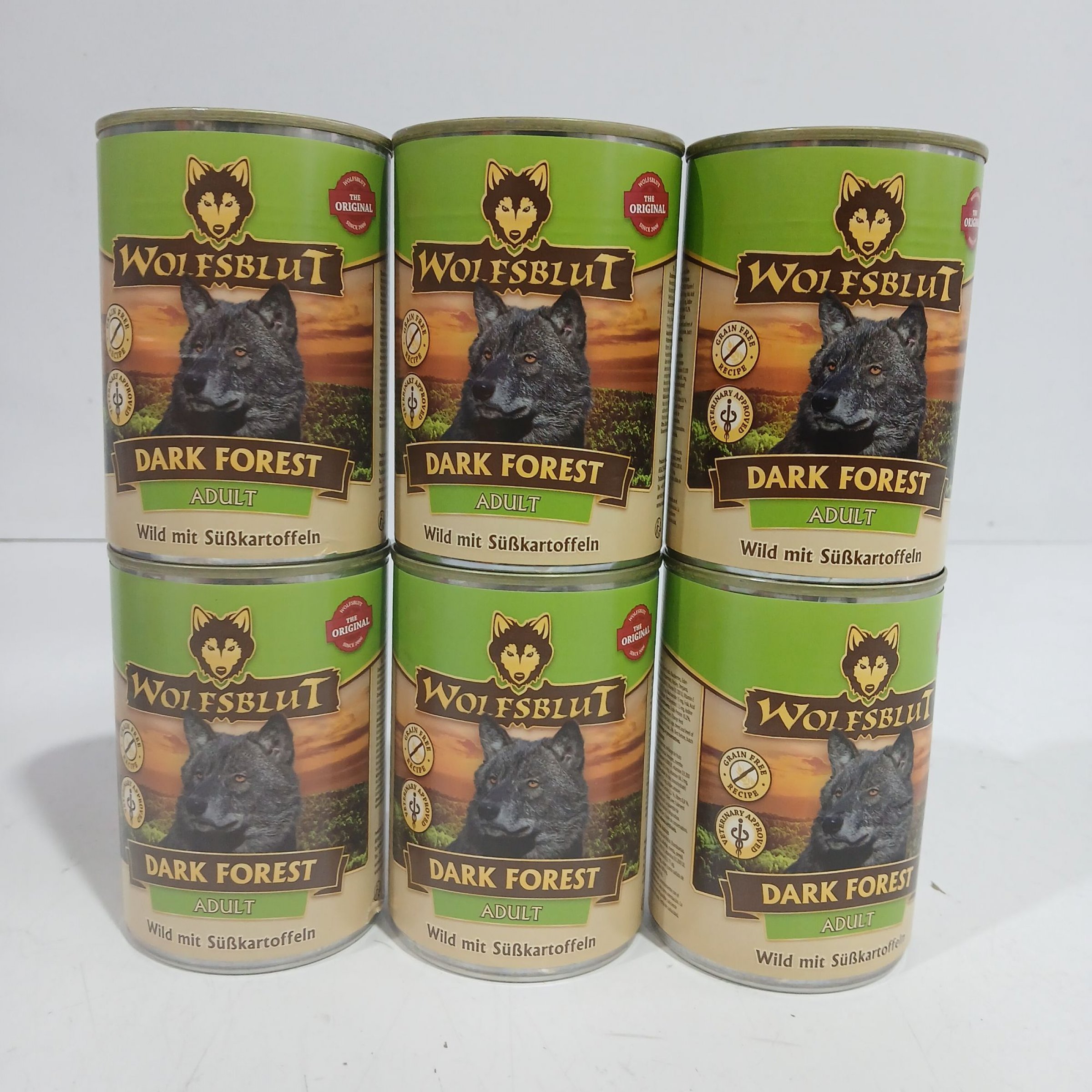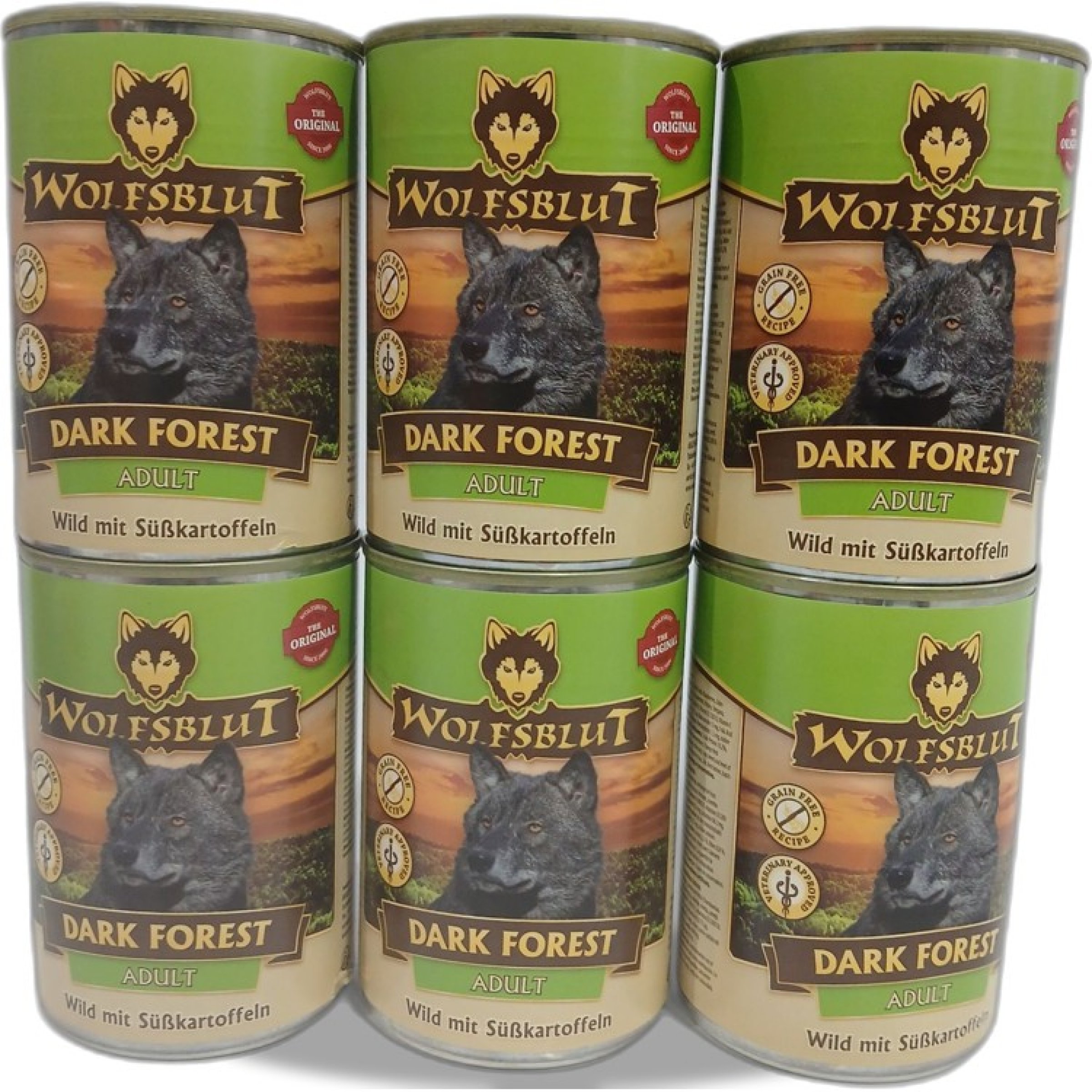6 Stk. Wolfsblut Dark Forest Adult Wild mit Süßkartoffeln je 395g